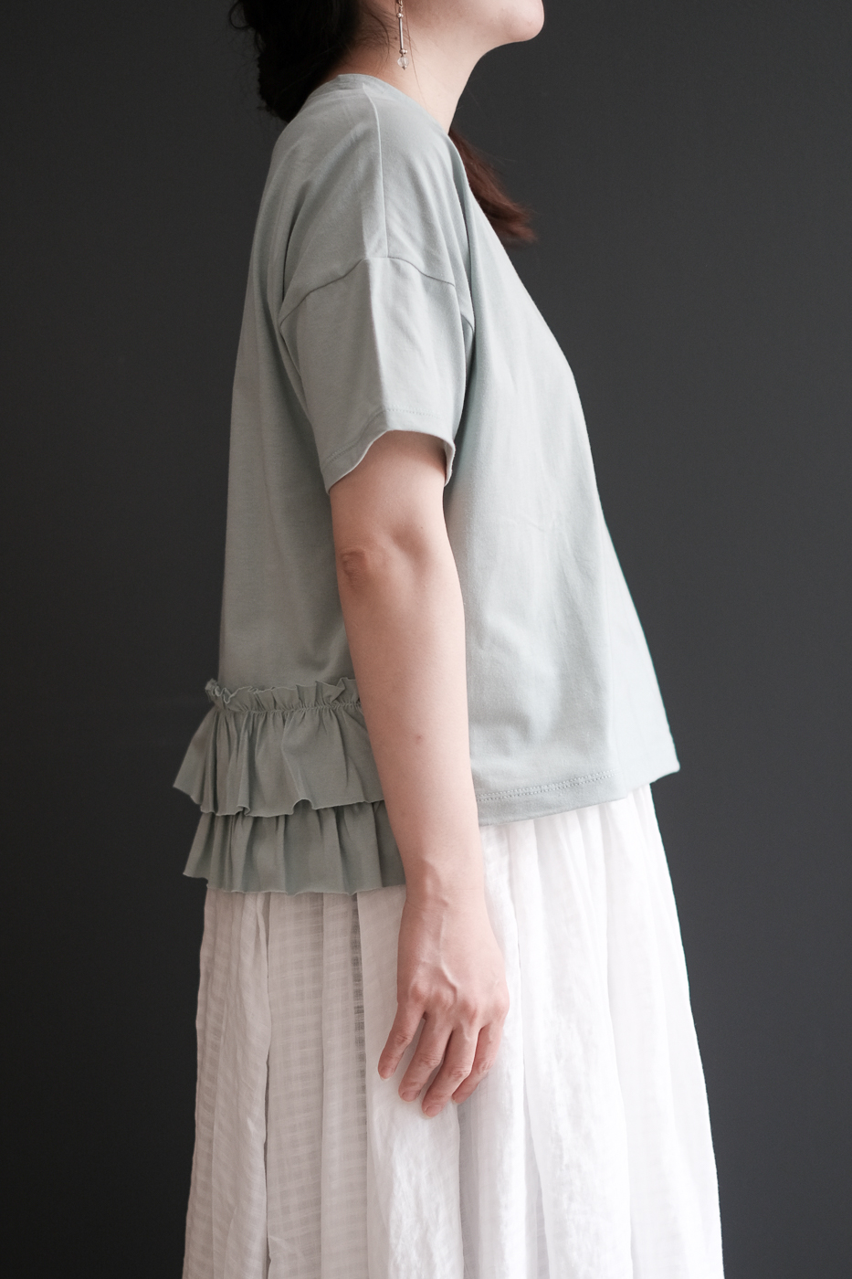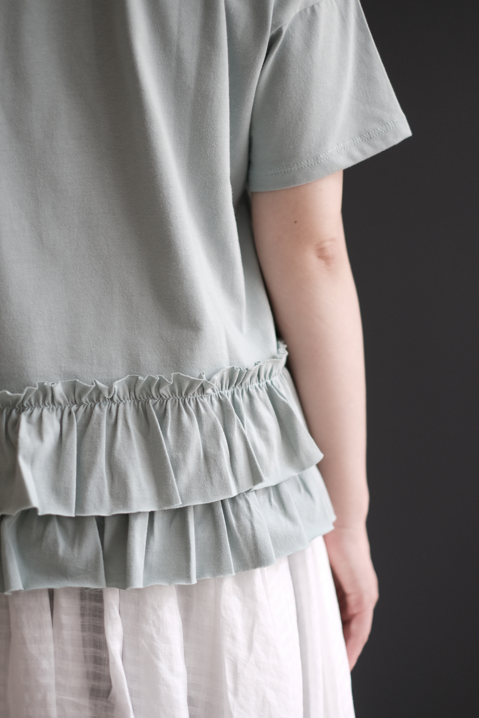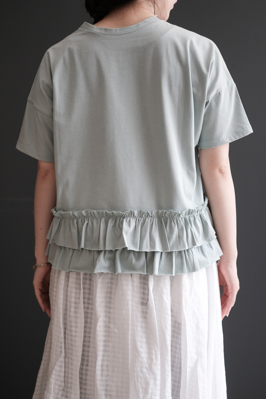 フリルで飾られた後姿が優しく穏やかなカットソー。