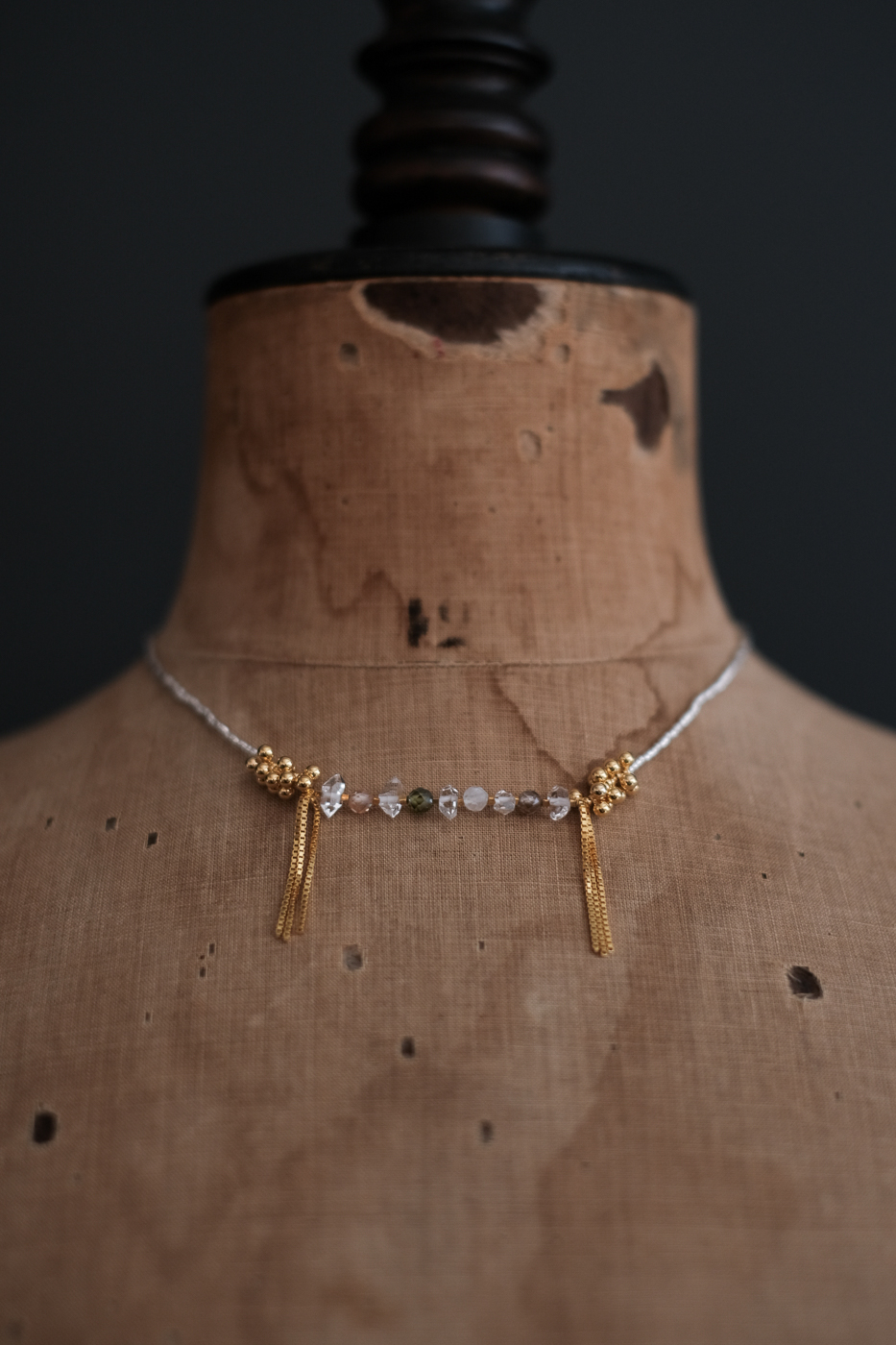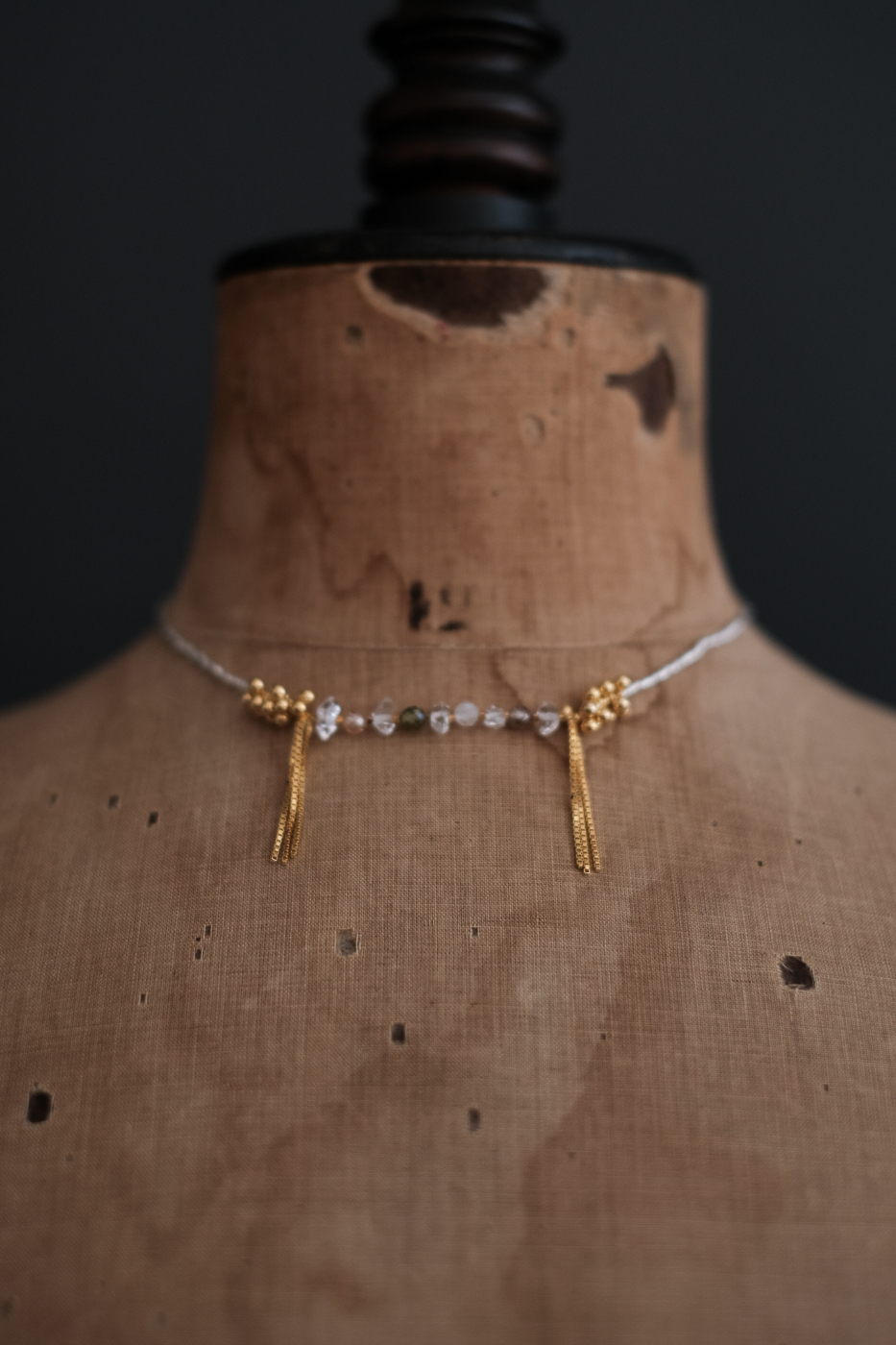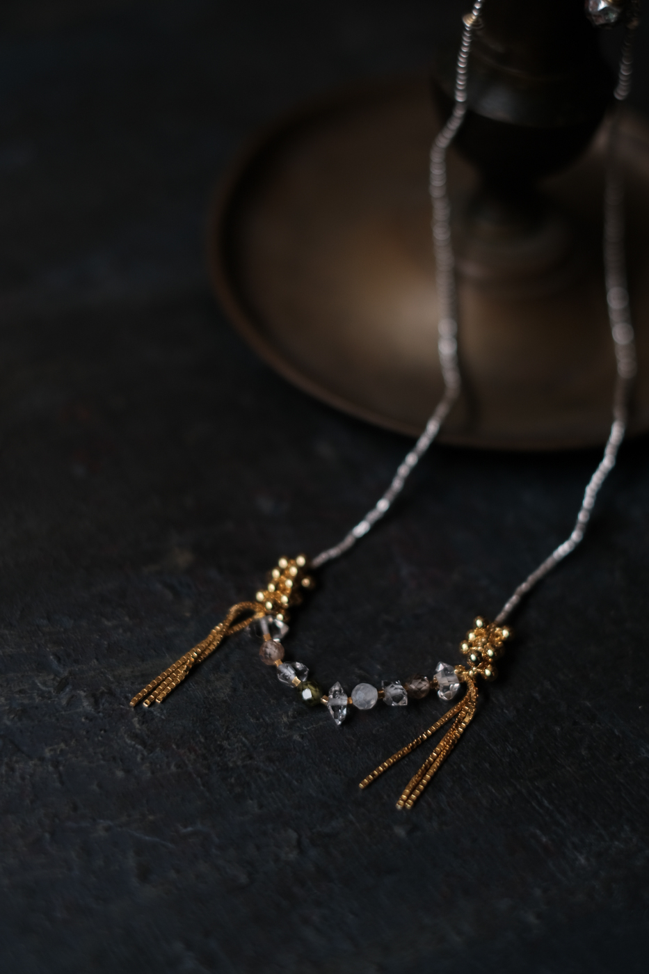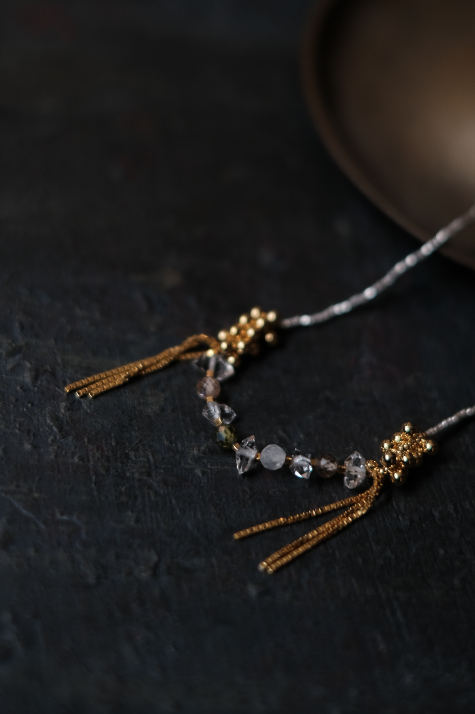 ベース : ジルコン・キュービックジルコニア・レインボームーンストーン・ダイヤモンドクォーツ・シルバー(金鍍金加工)・真鍮(金鍍金加工)