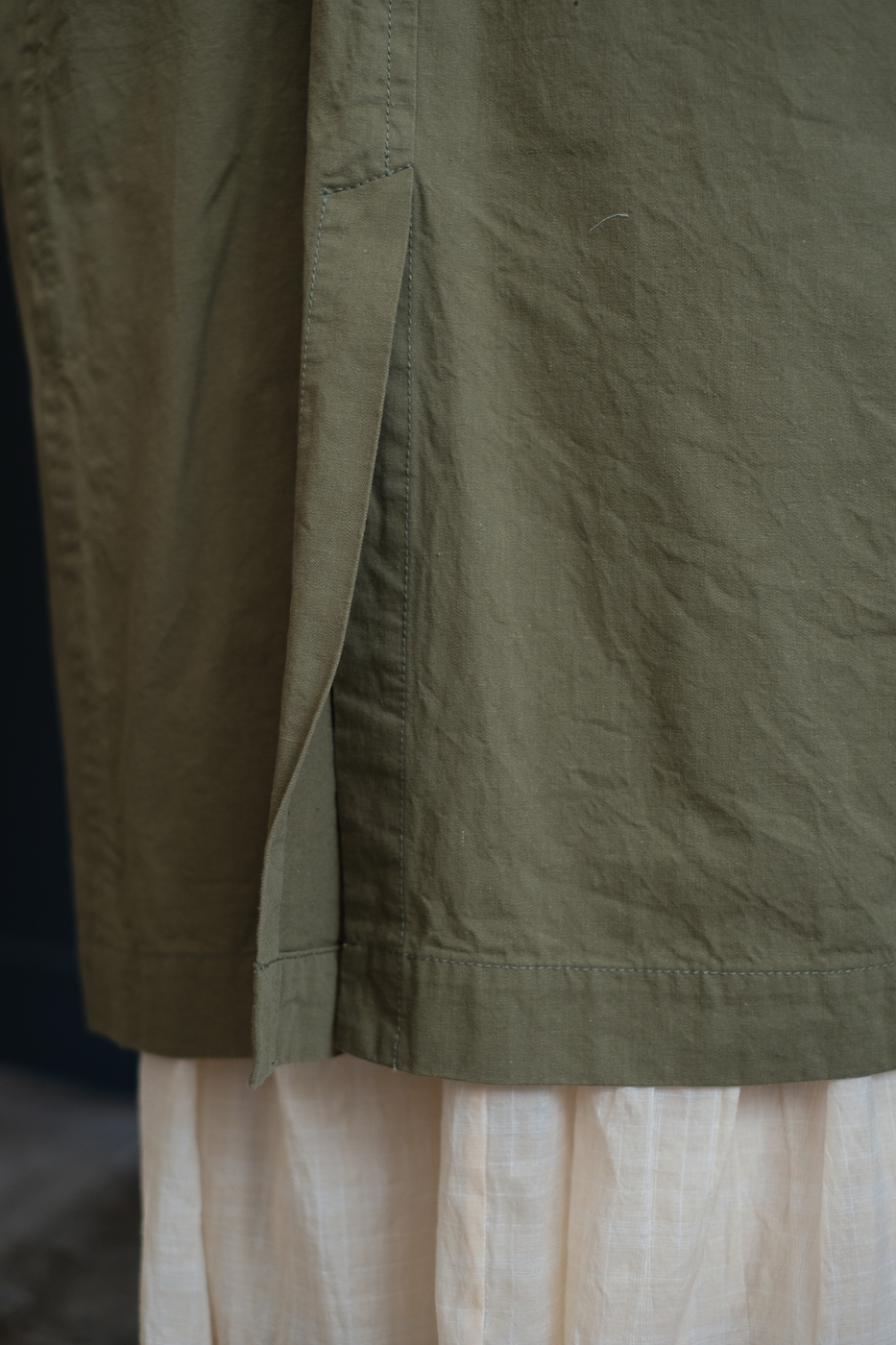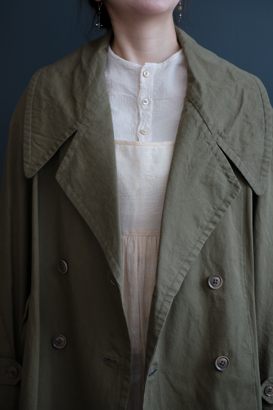 一枚仕立てのドロップショルダーコート。