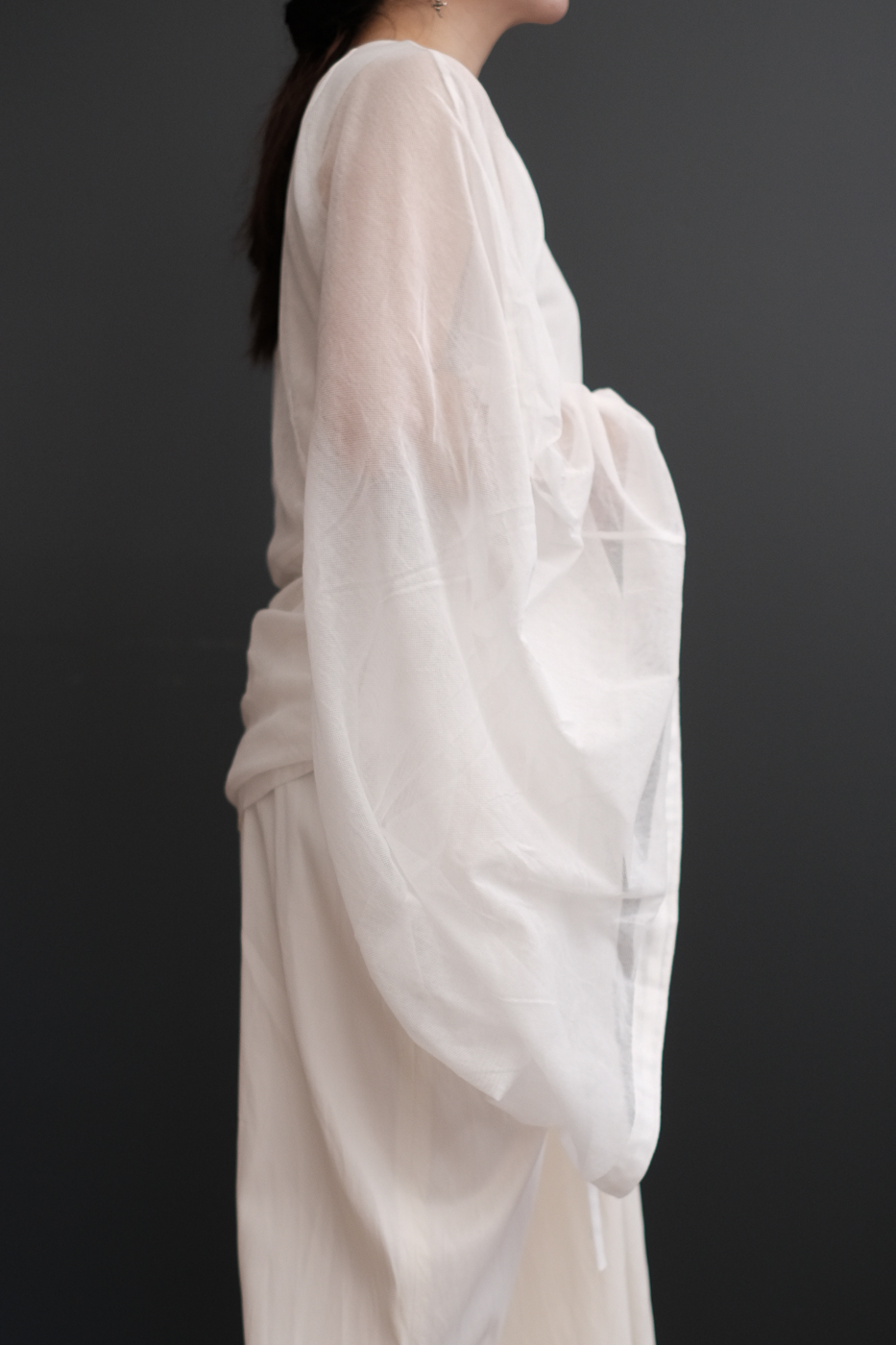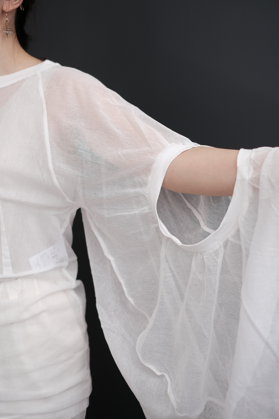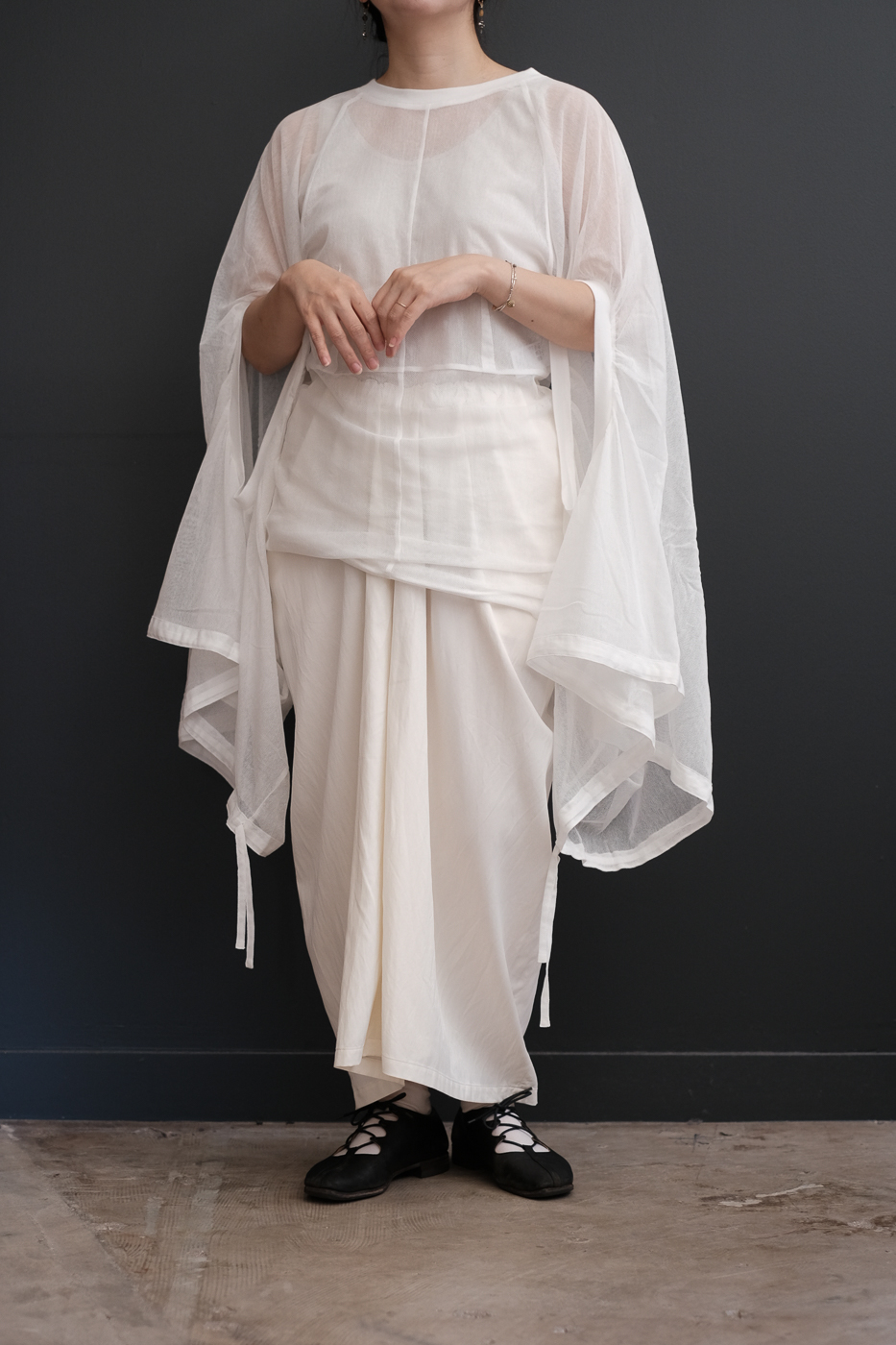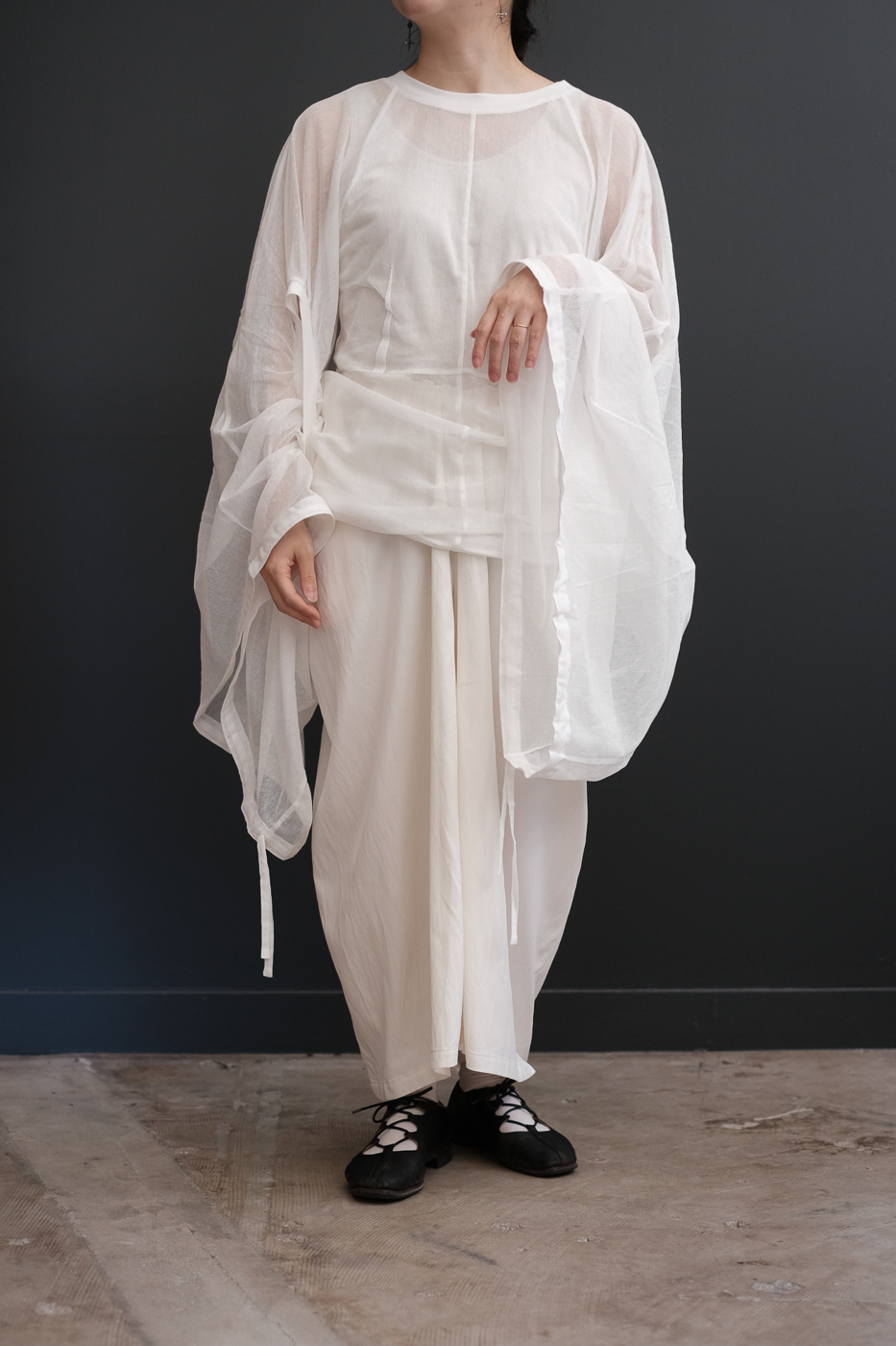 No.07 Where the fog clears 変形スリーブトップス col.foggy white