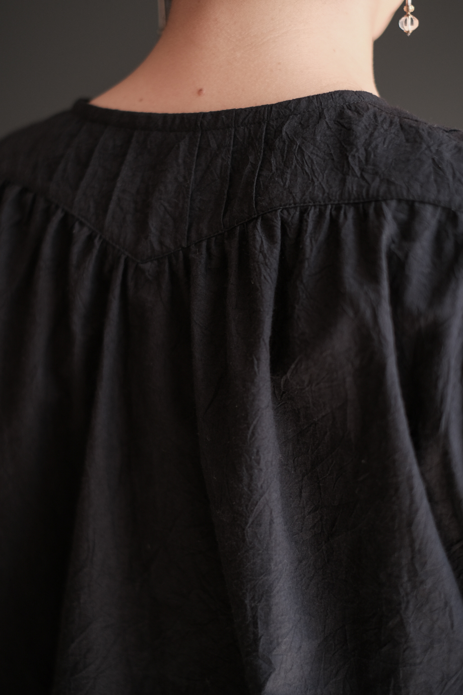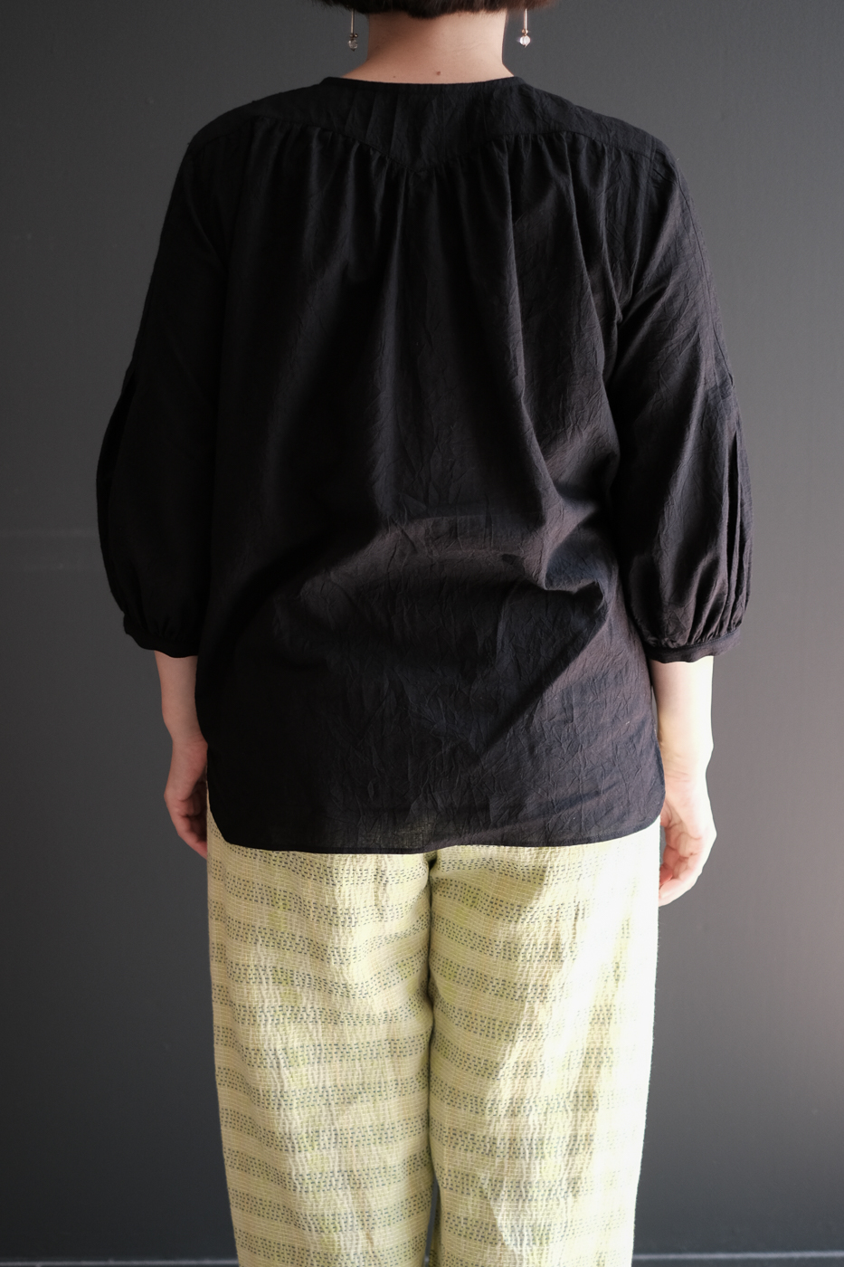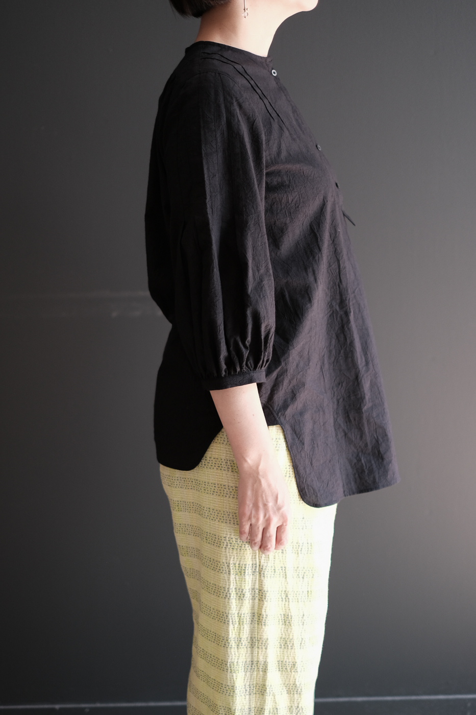 抽象的な気配が愛らしい5分袖のパフスリーブシャツ。