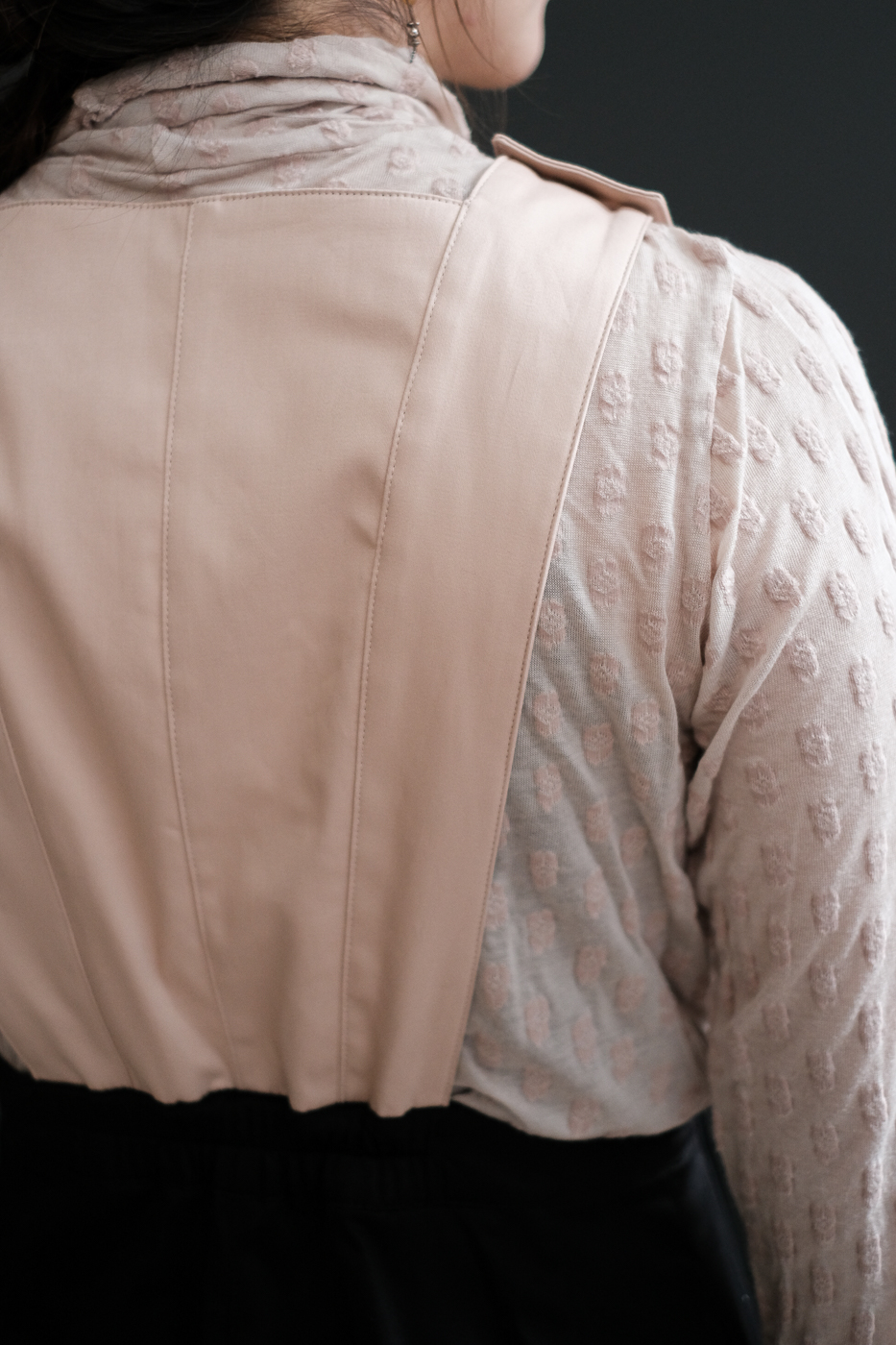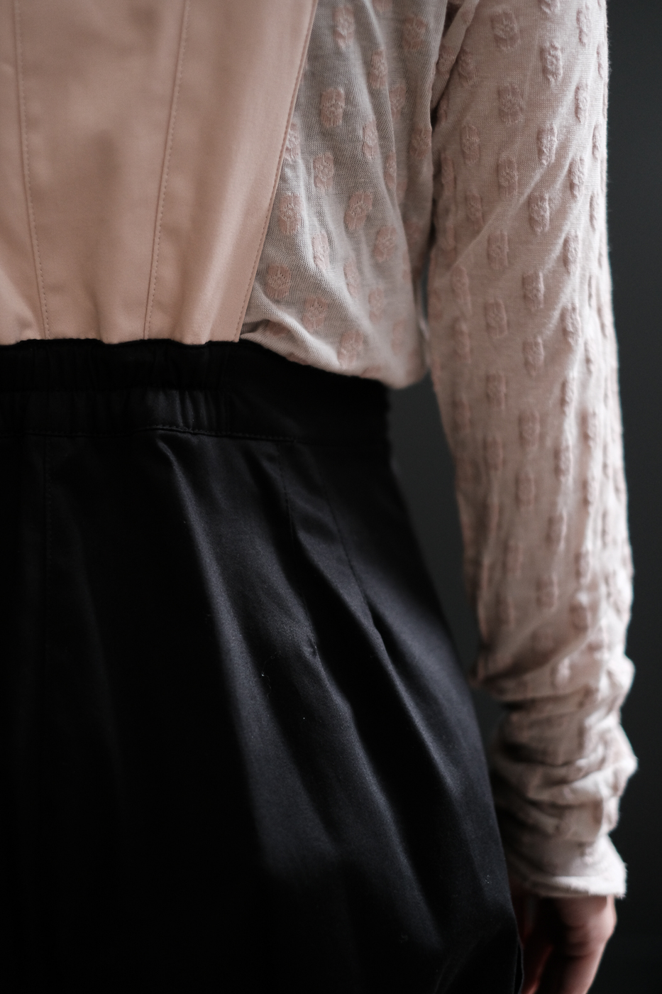 生地は抑え目な光沢感のサテンストレッチ。
