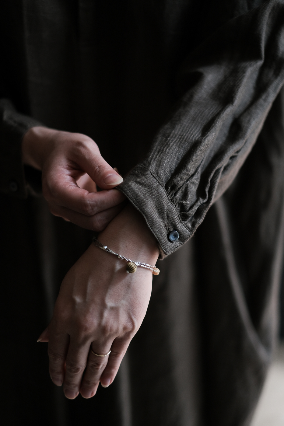 フロントの一番上と袖口のボタンは