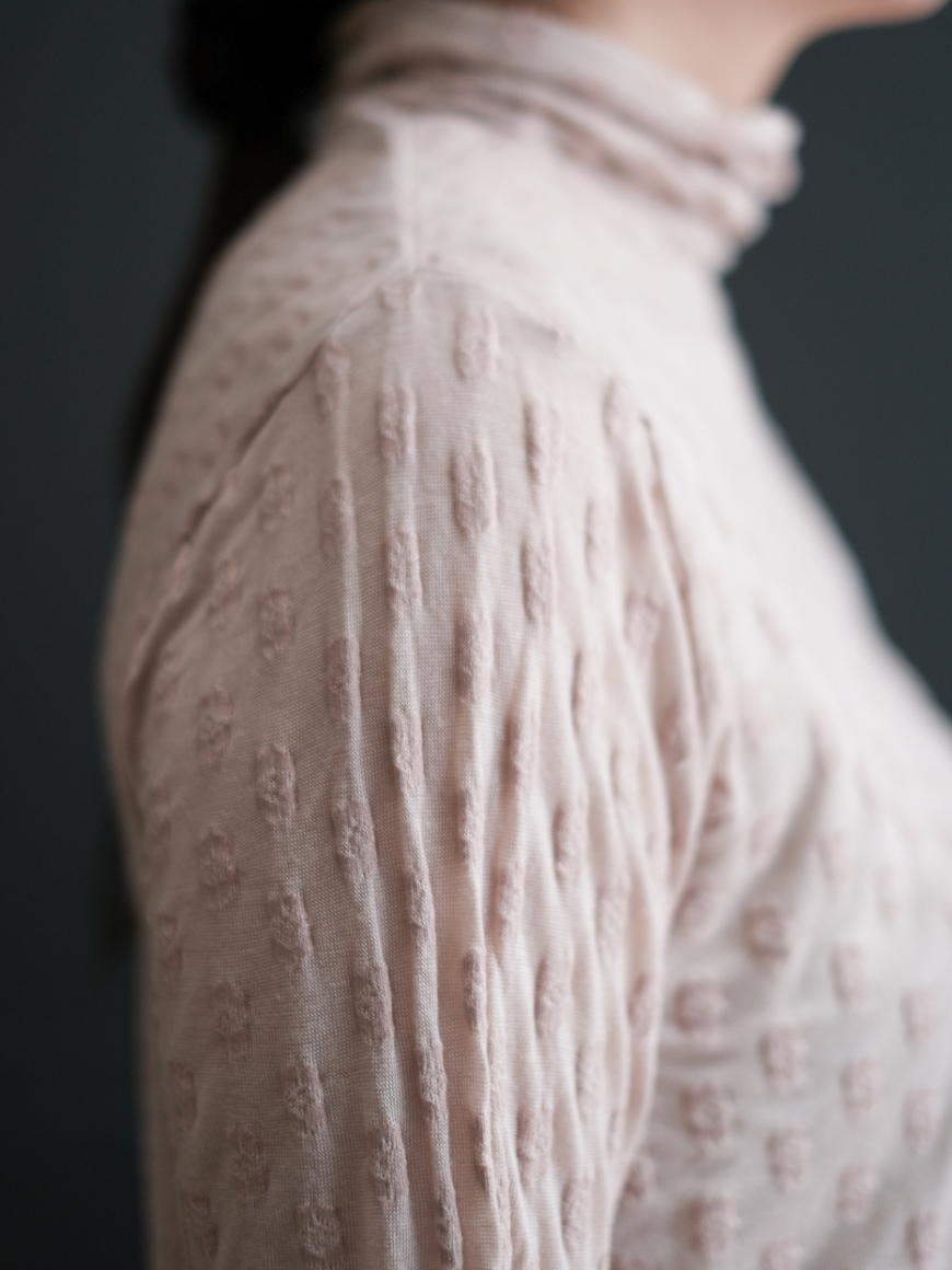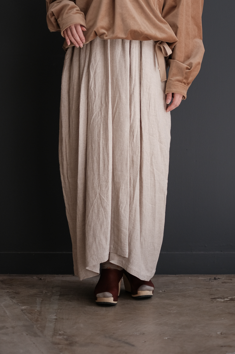 ギャザーを寄せ、動いた時に美しく見える生地の量感を