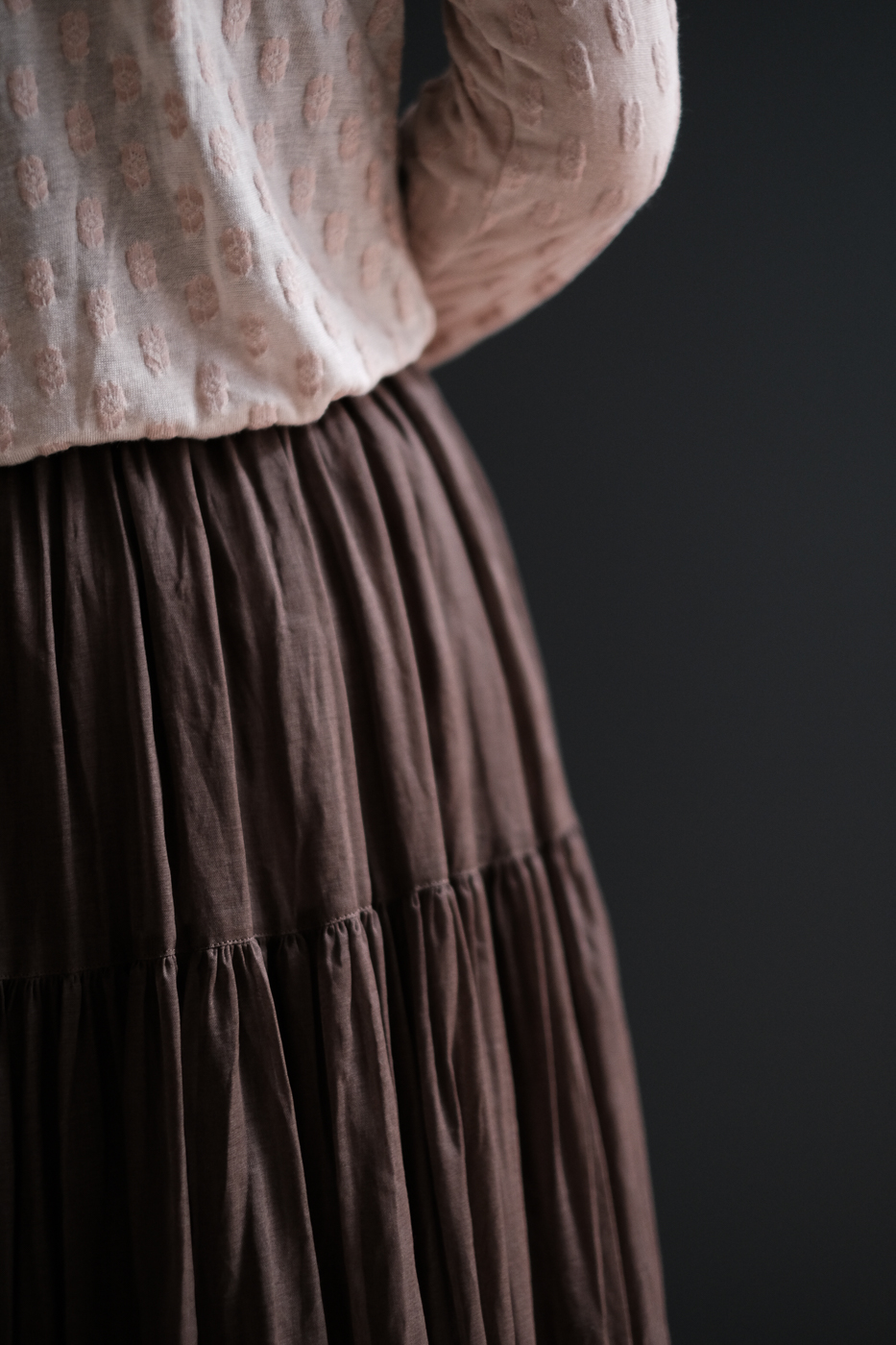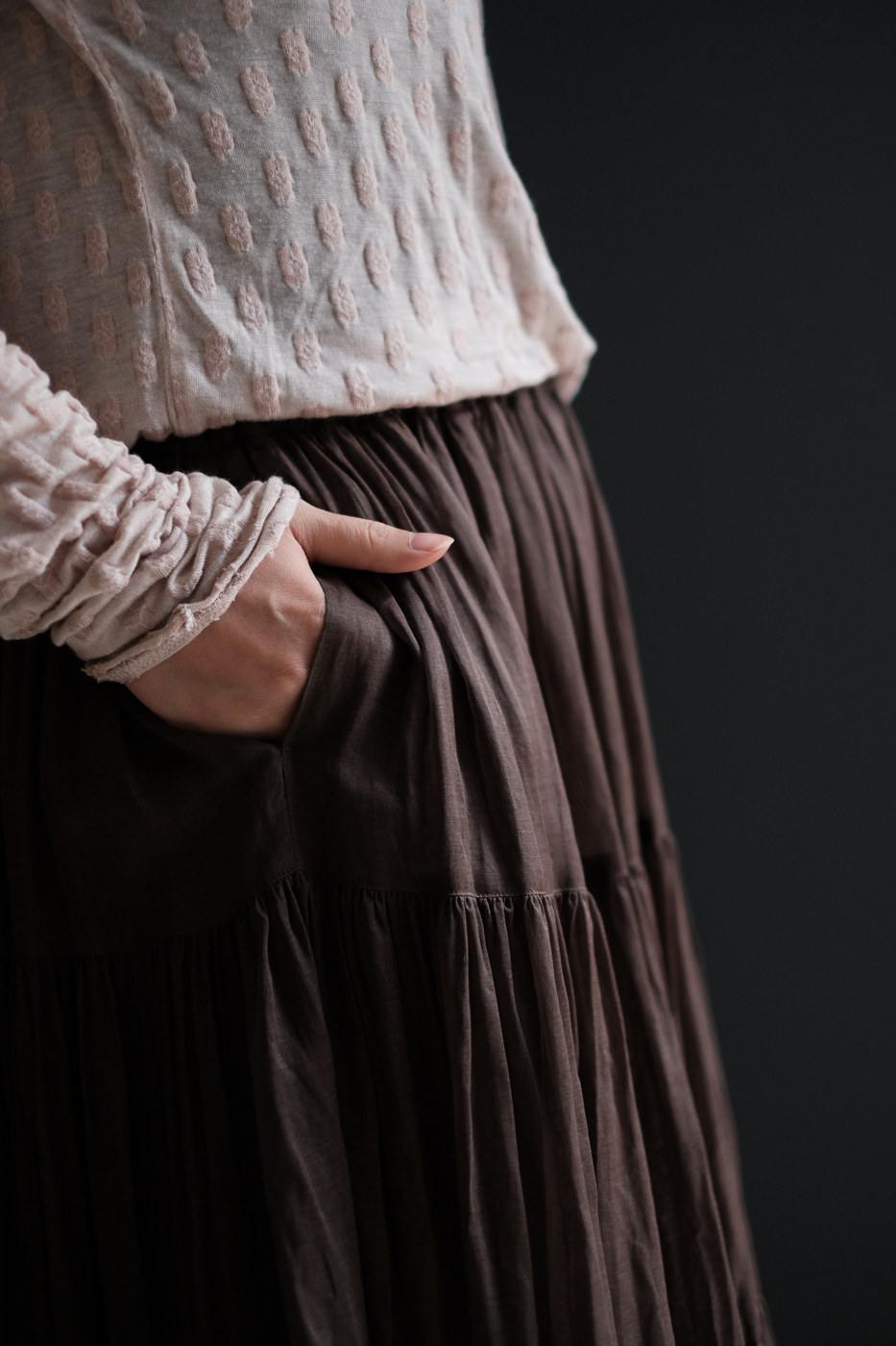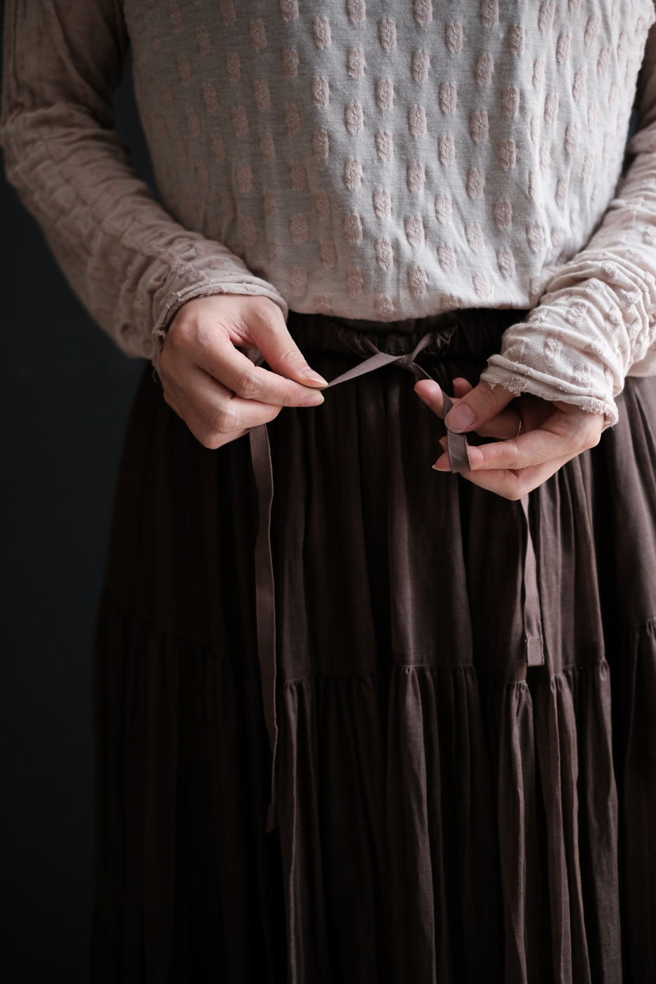 ギャザーを寄せ、動いた時に美しく見える生地の量感を
