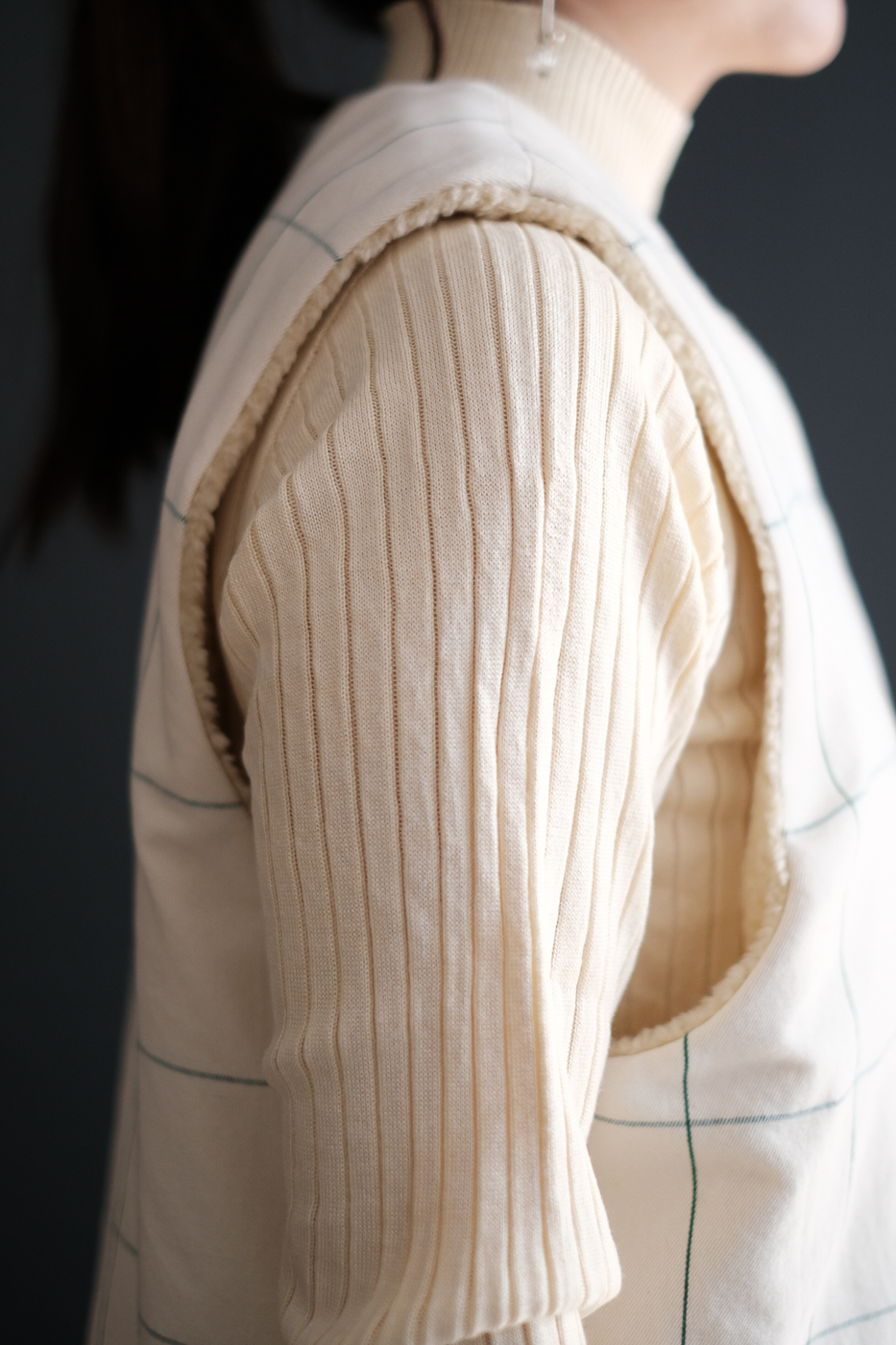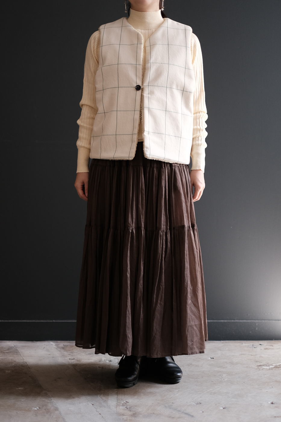 No.13 書かれたメッセージ グラフチェックベスト col.off white+green