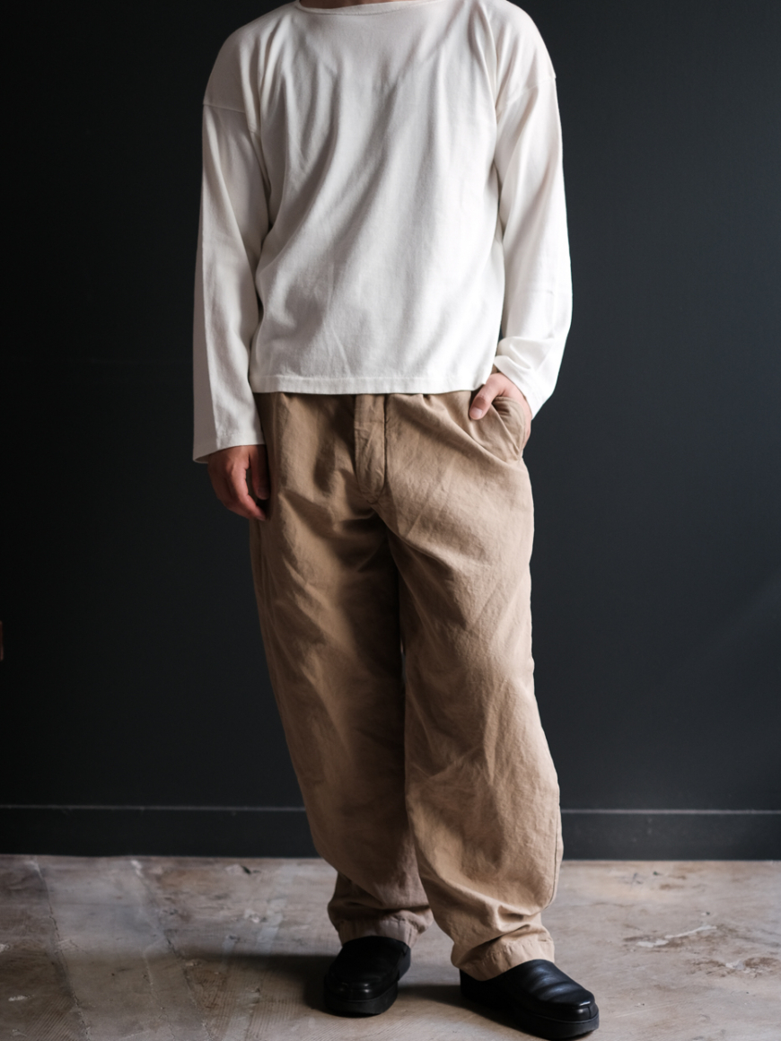 内側に潜んだ共地の紐で絞りを効かせることも可能で、