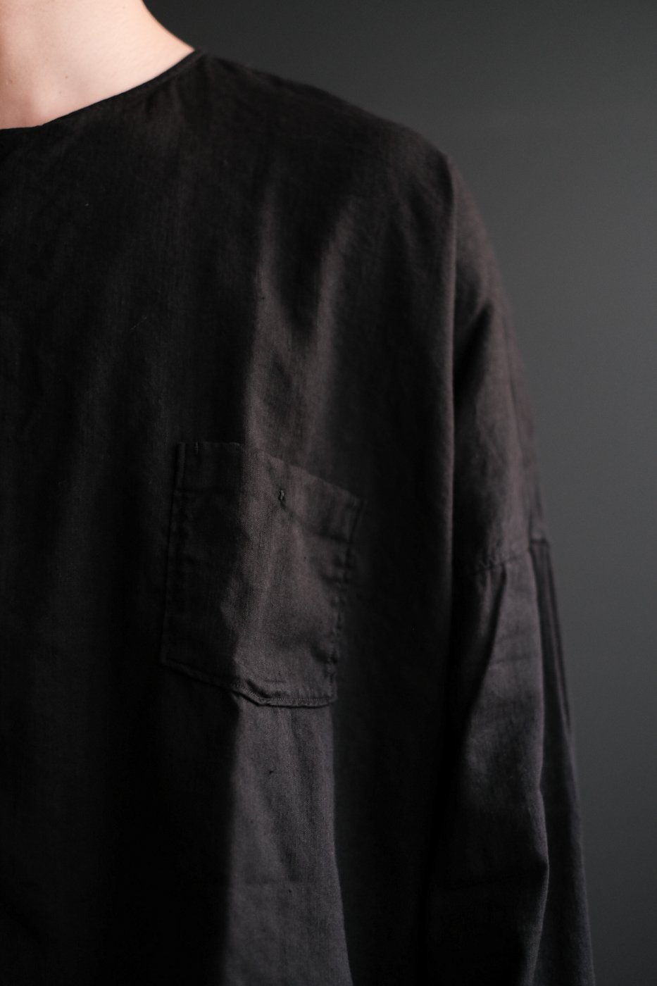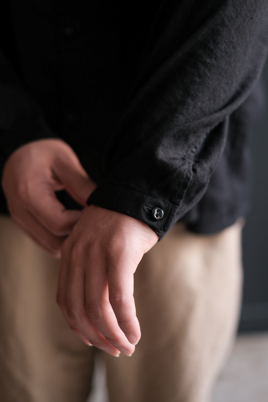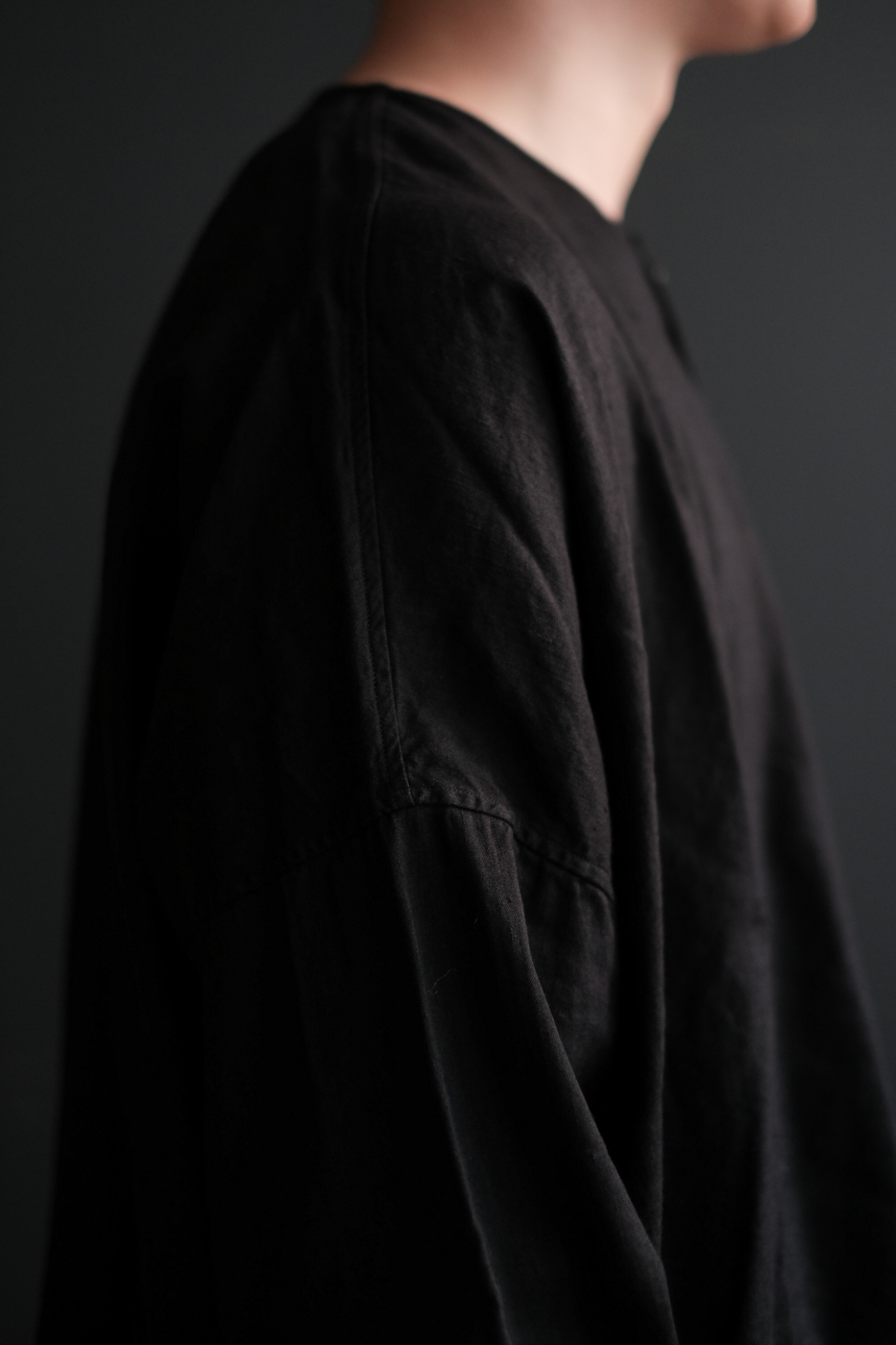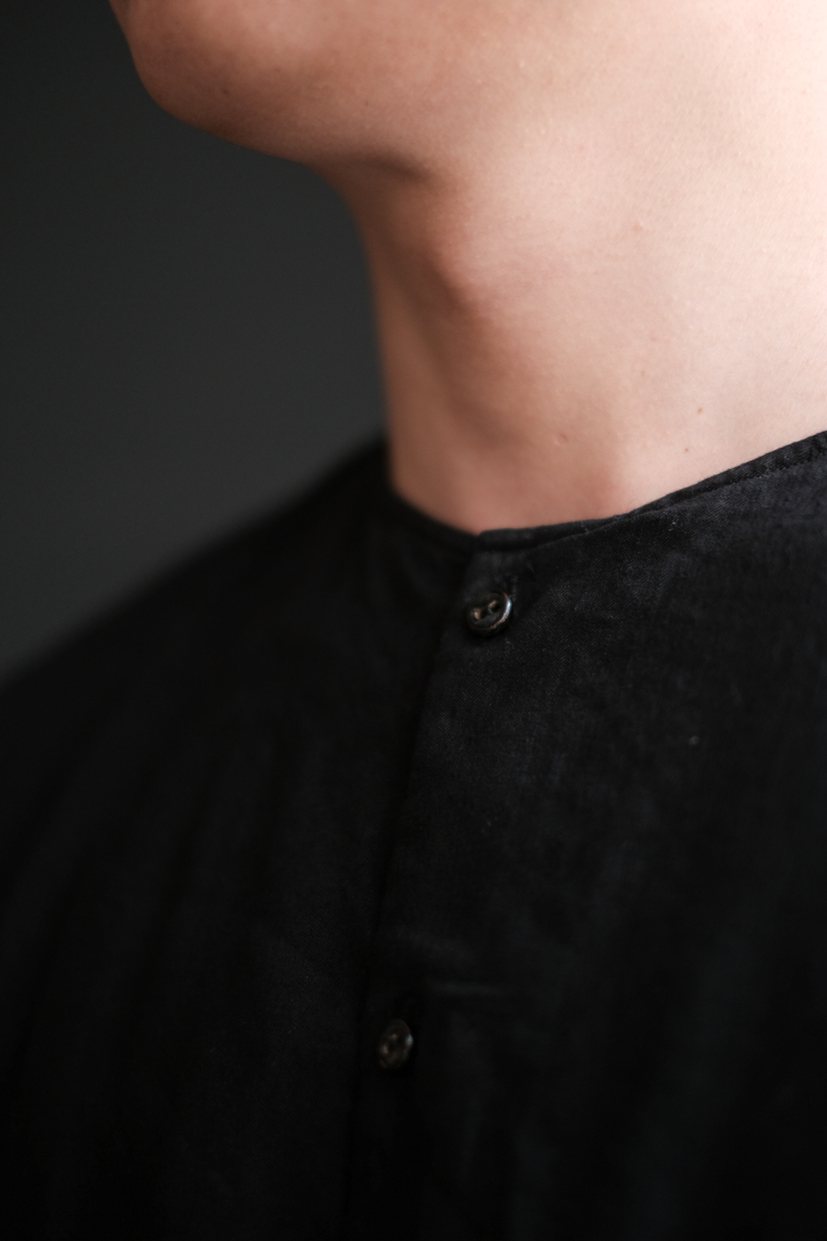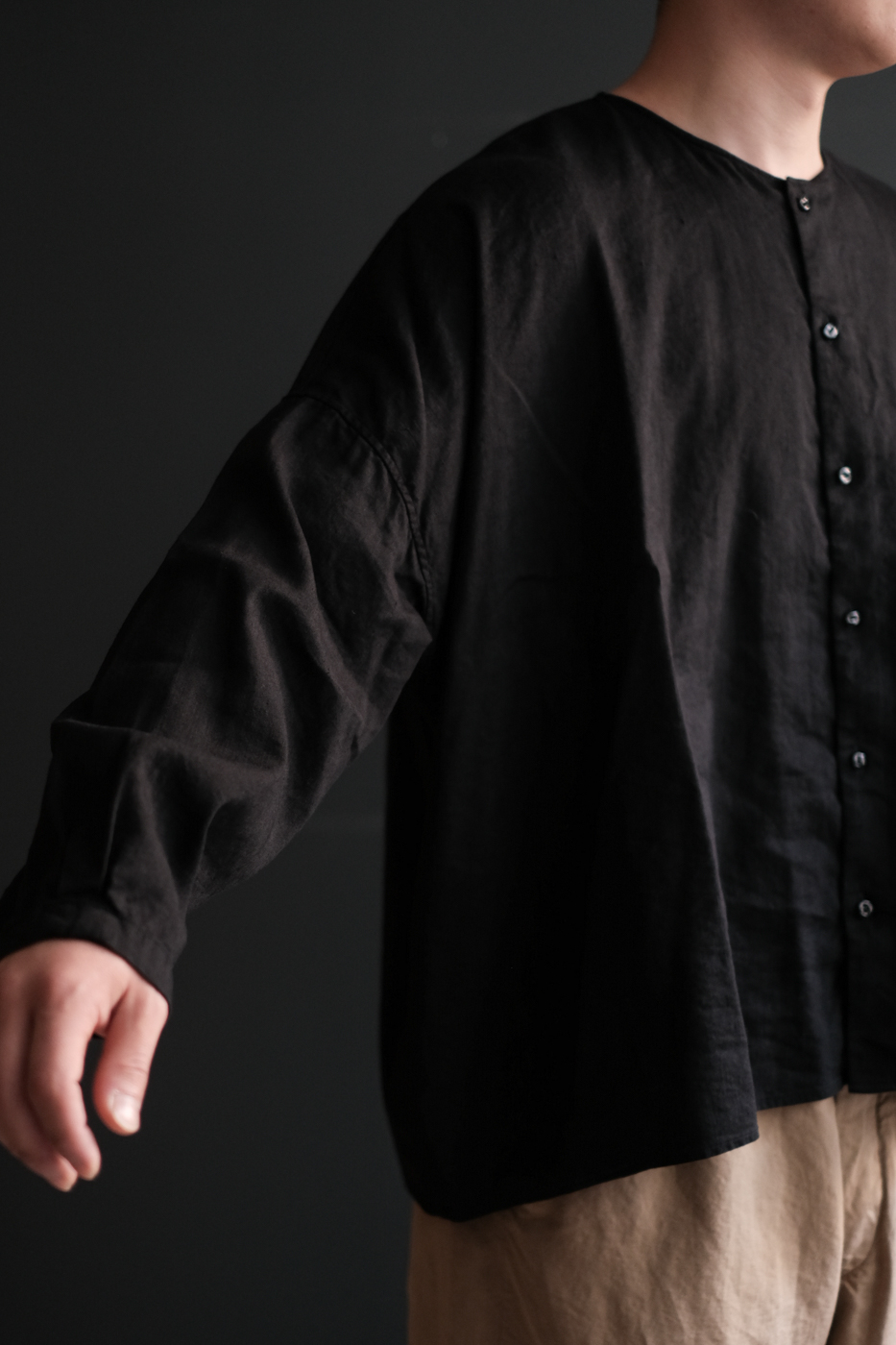 飾り気のないパターンで作られたNo-collar shirt wide。