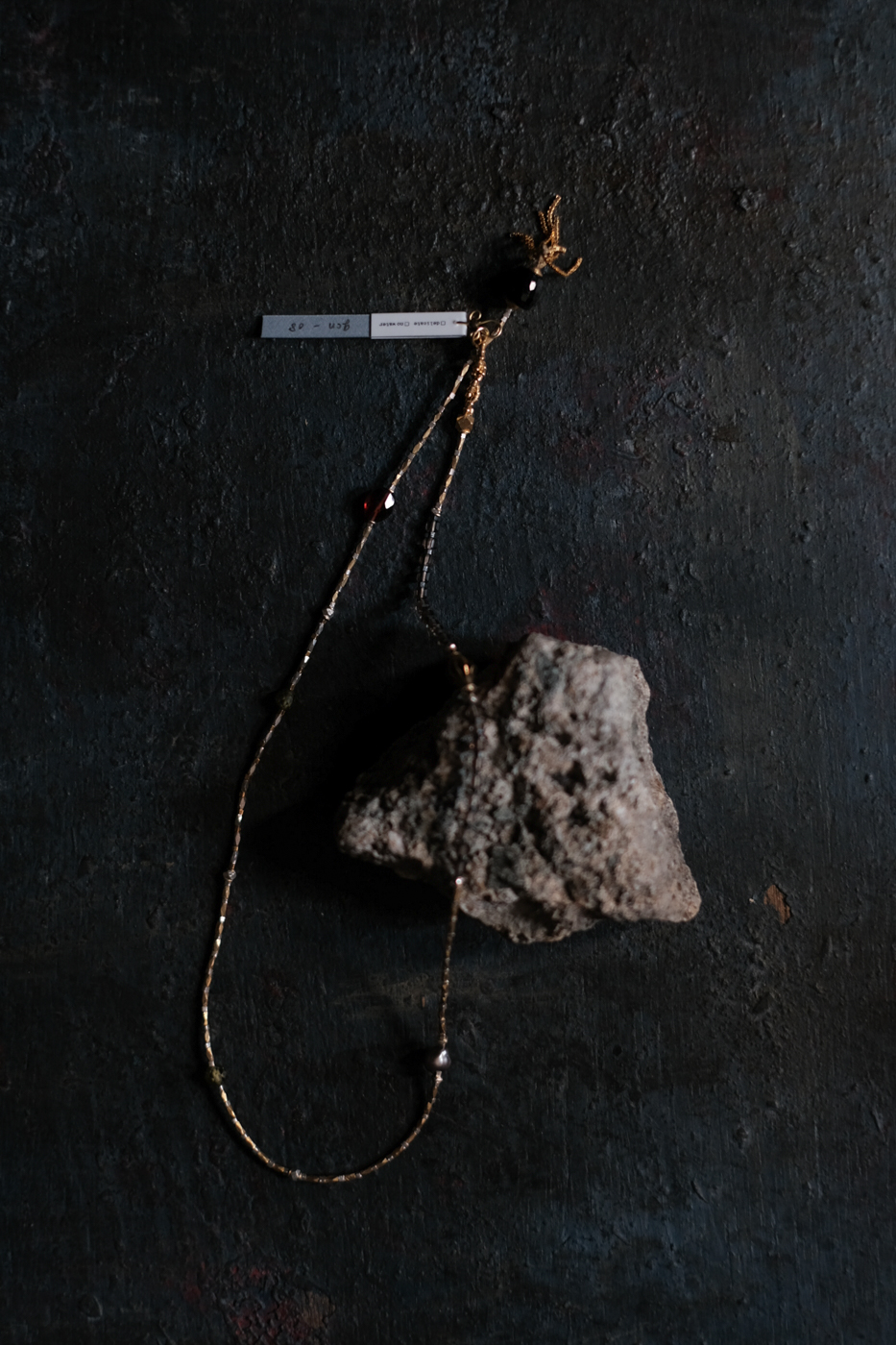 ベース : ガーネット・淡水パール・スモーキークォーツ・ジルコン・真鍮・シルバー(金鍍金加工)