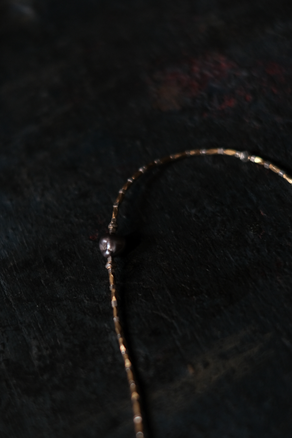 銀黒色に染色された極小の淡水パール。