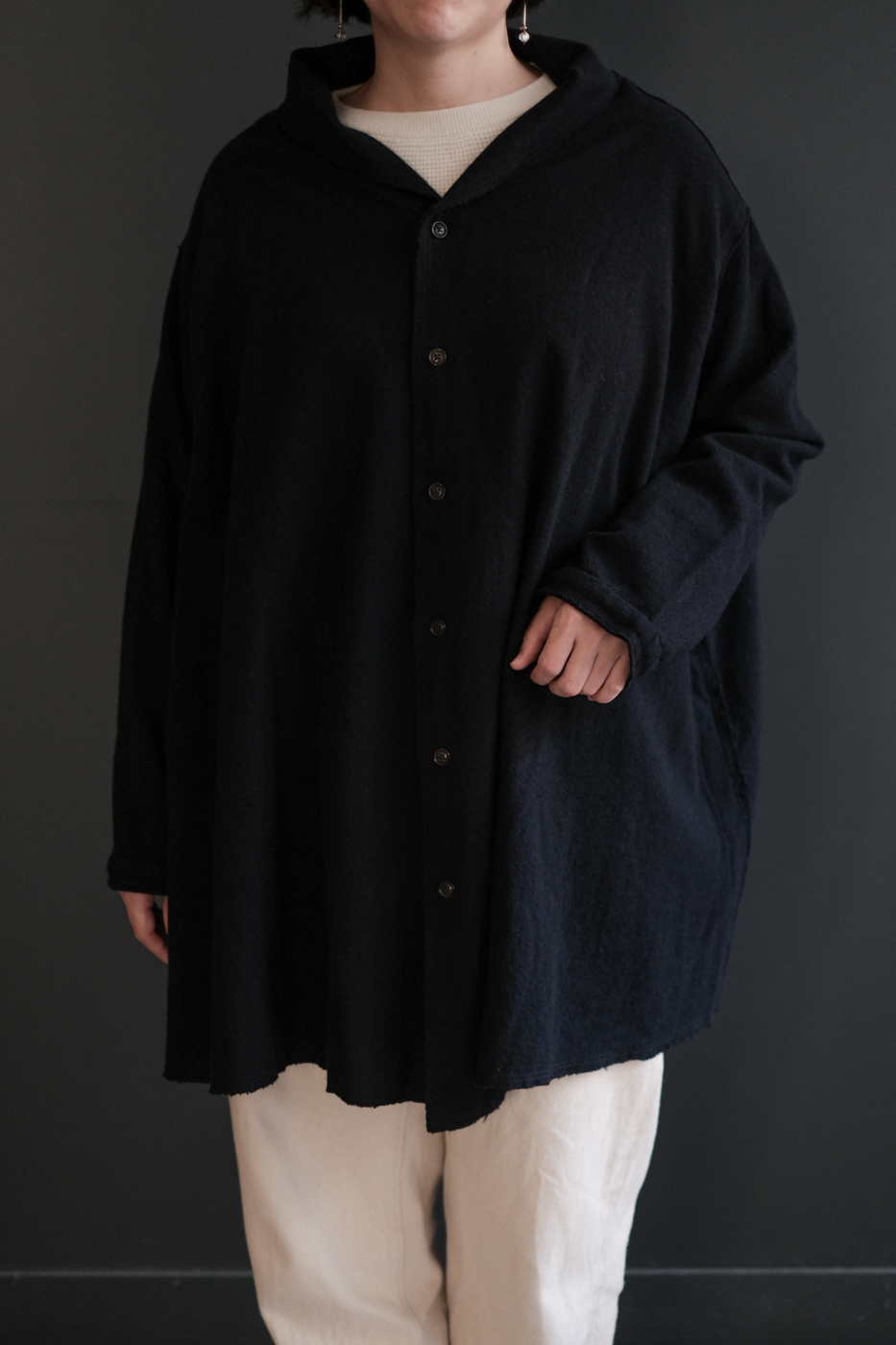 Stole shirt (Soft wool cashmere etamine) col.charcoal