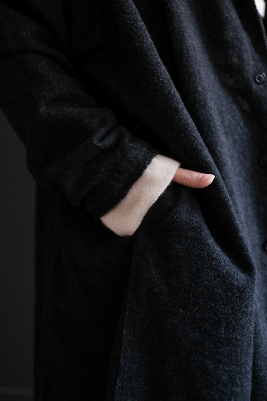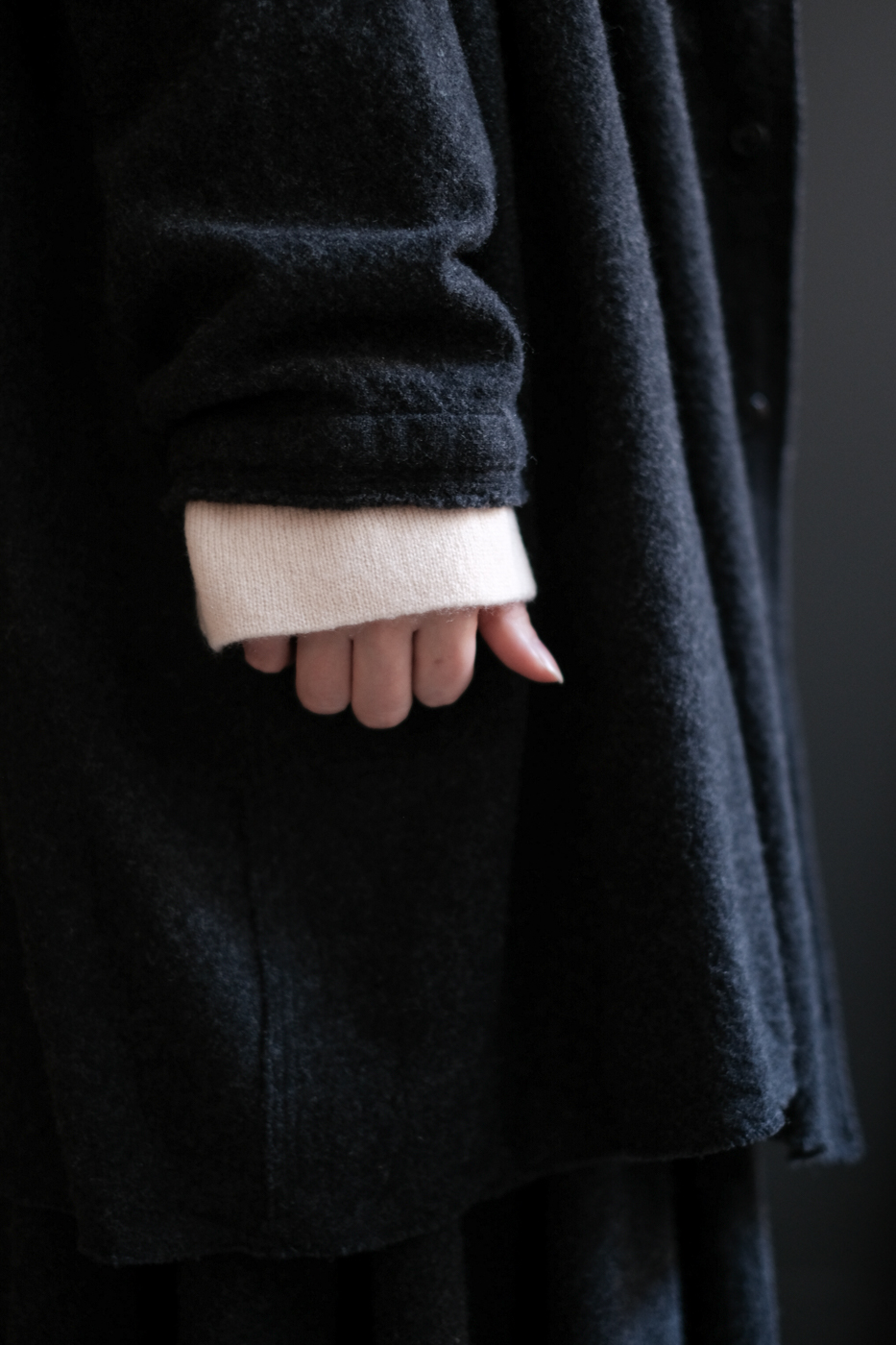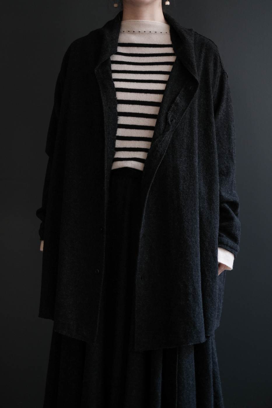 Stole shirt (Soft wool cashmere etamine) col.charcoal