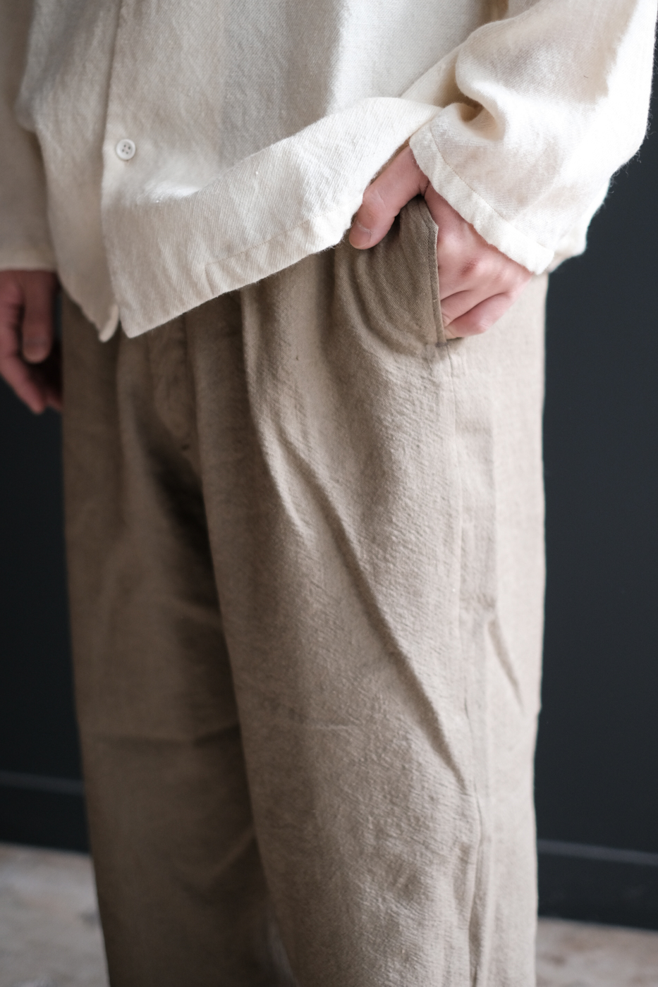 Front tuck trouser (Wool indigo linen twill washer) col.beige