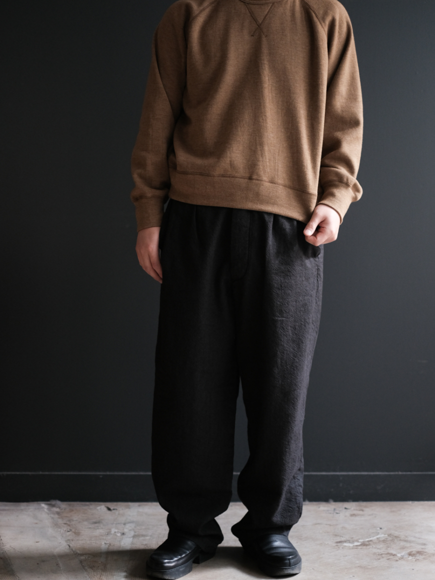 Front tuck trouser (Wool indigo linen twill washer) col.black