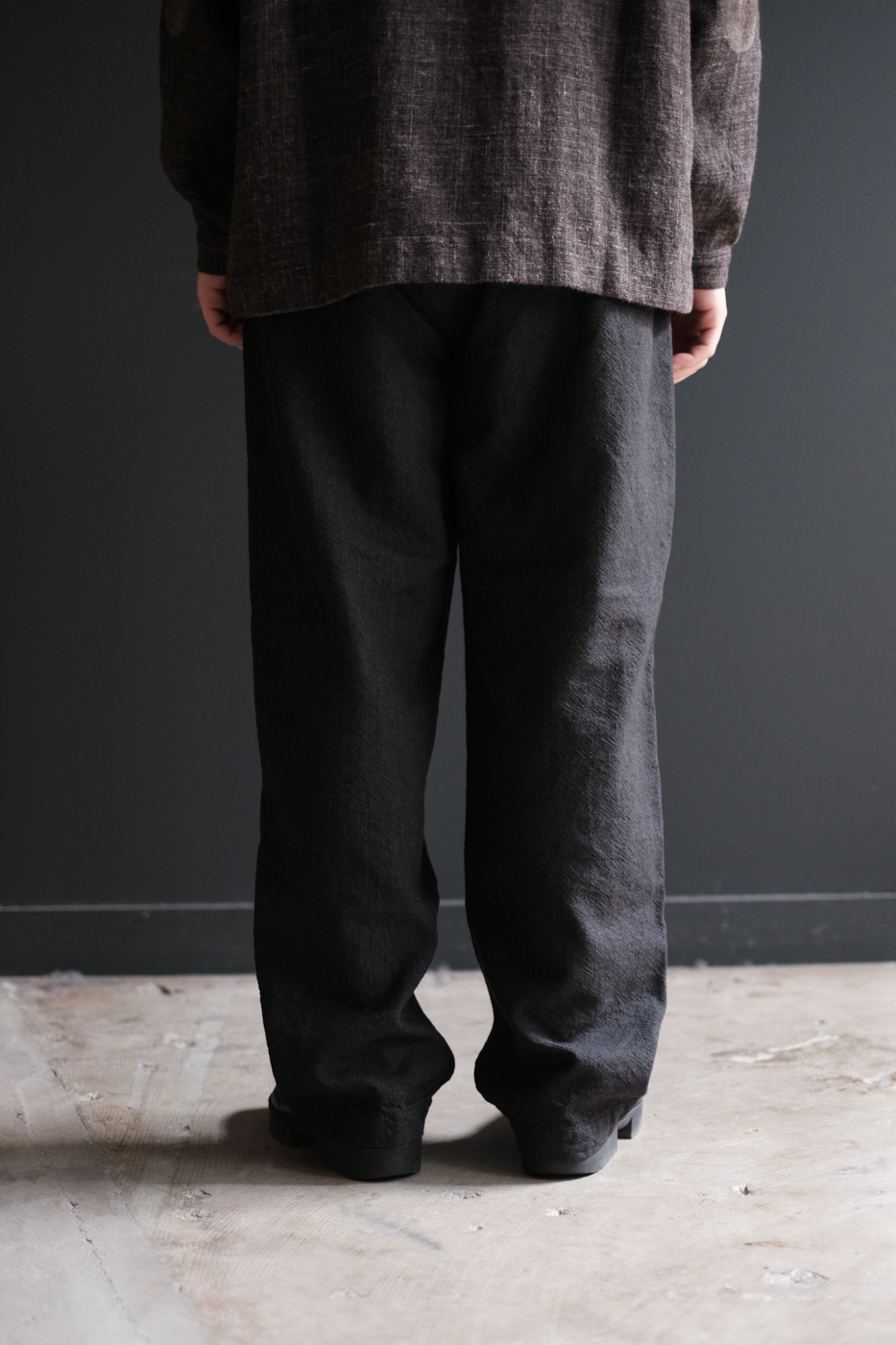 Front tuck trouser (Wool indigo linen twill washer) col.black