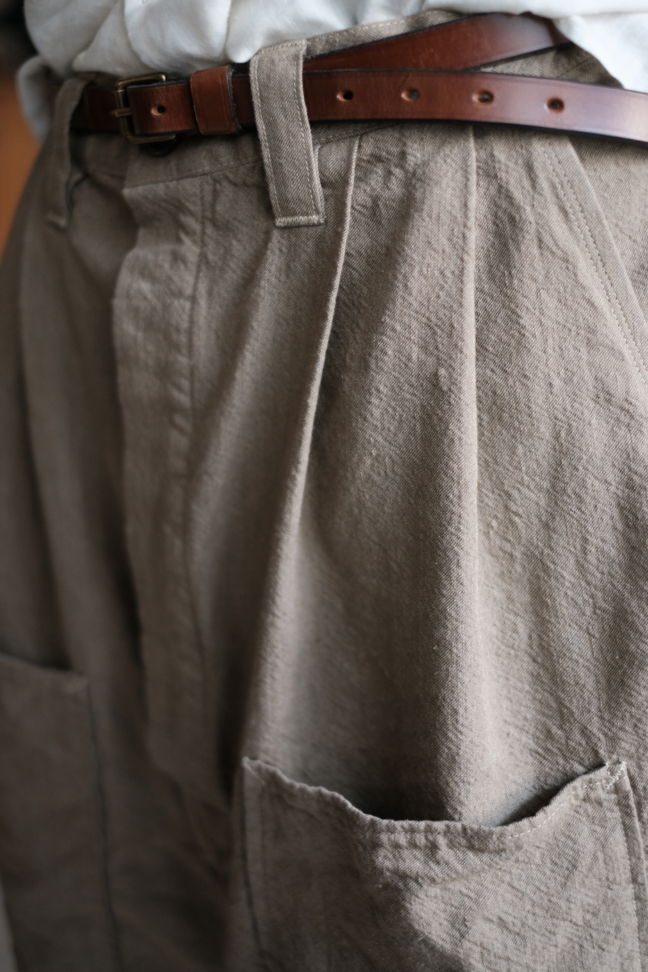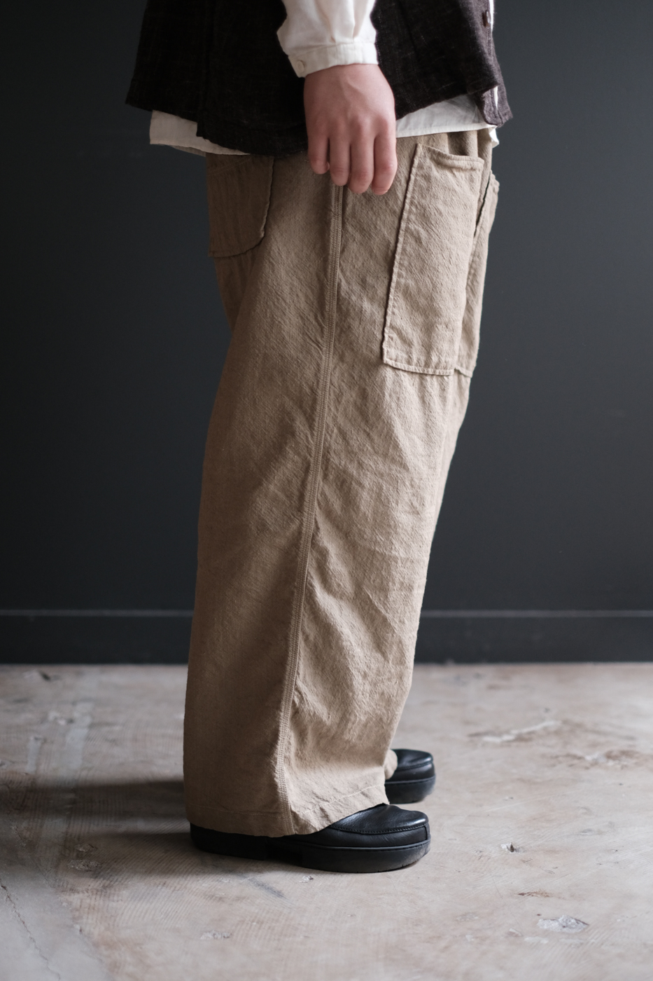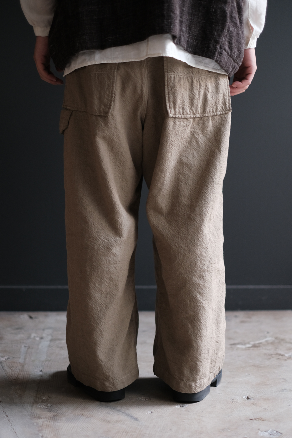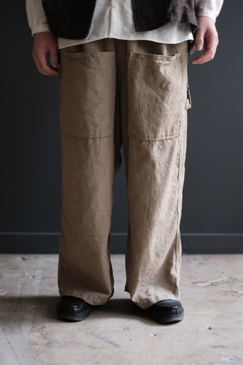 Over pants 2 (Wool indigo linen twill washer) col.beige