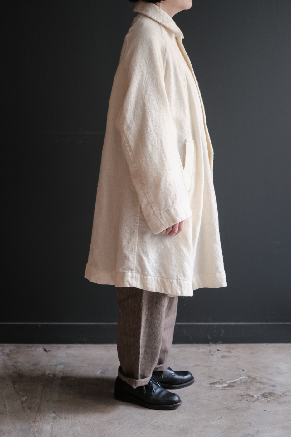 Dohchu coat (Wool hemp tweed) col.ecru