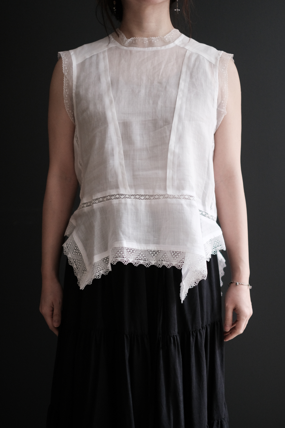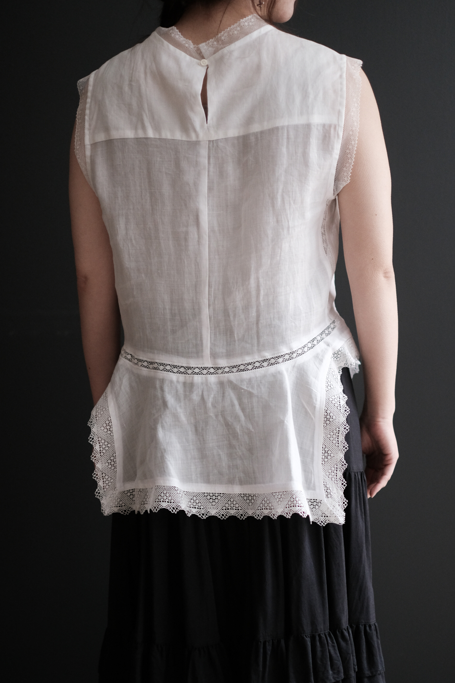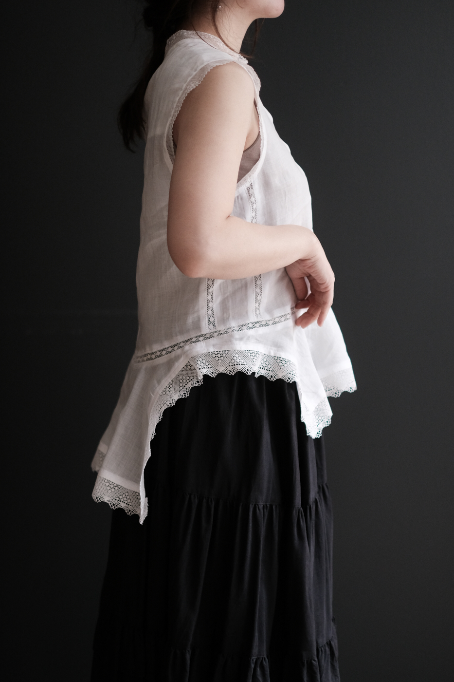 身頃にもレースやダーツが施されており、