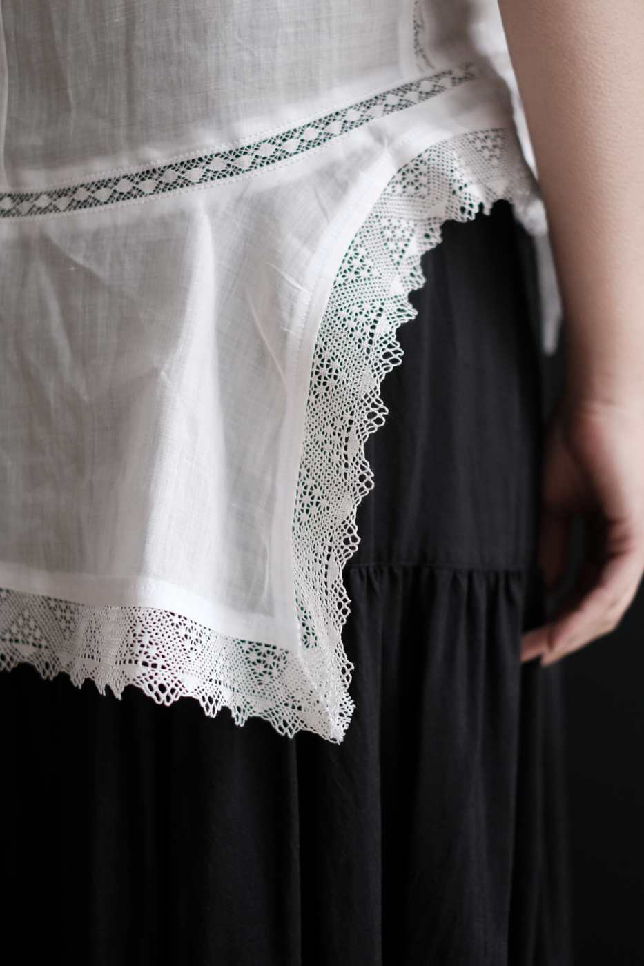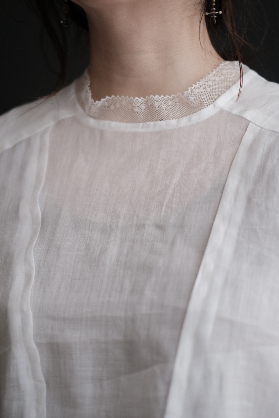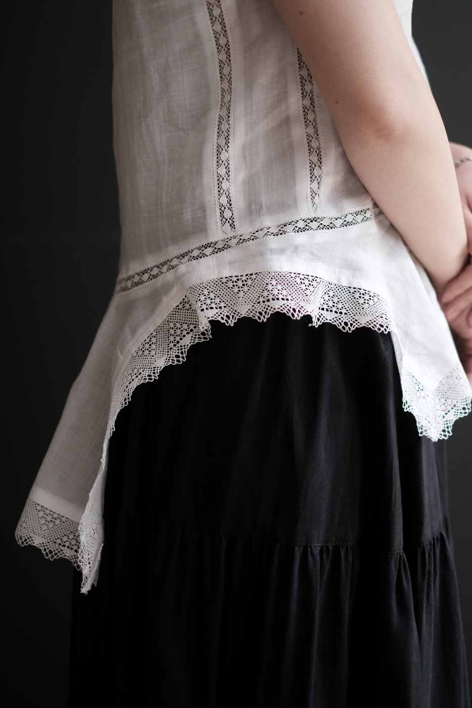 身頃にもレースやダーツが施されており、