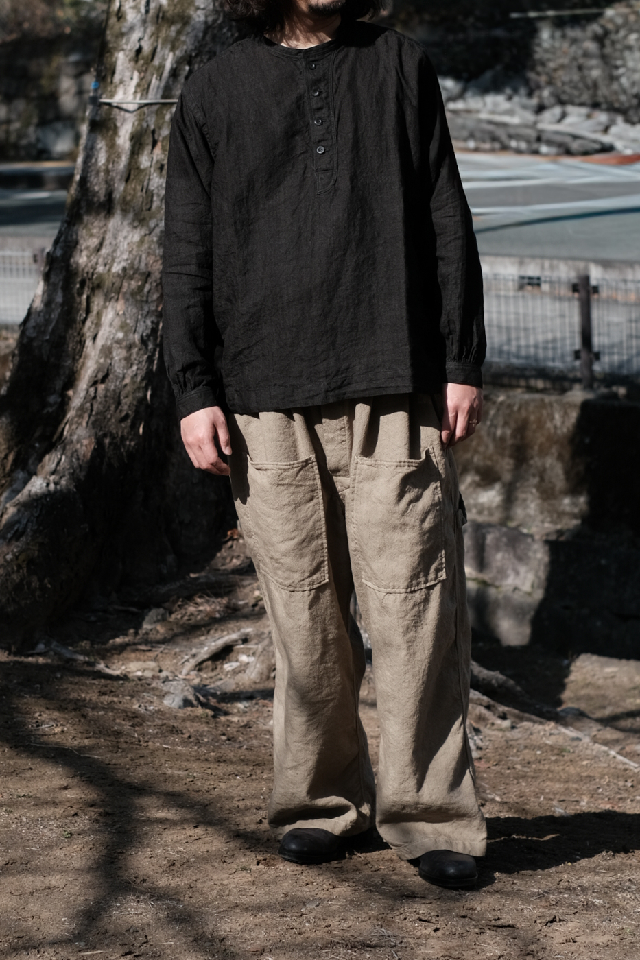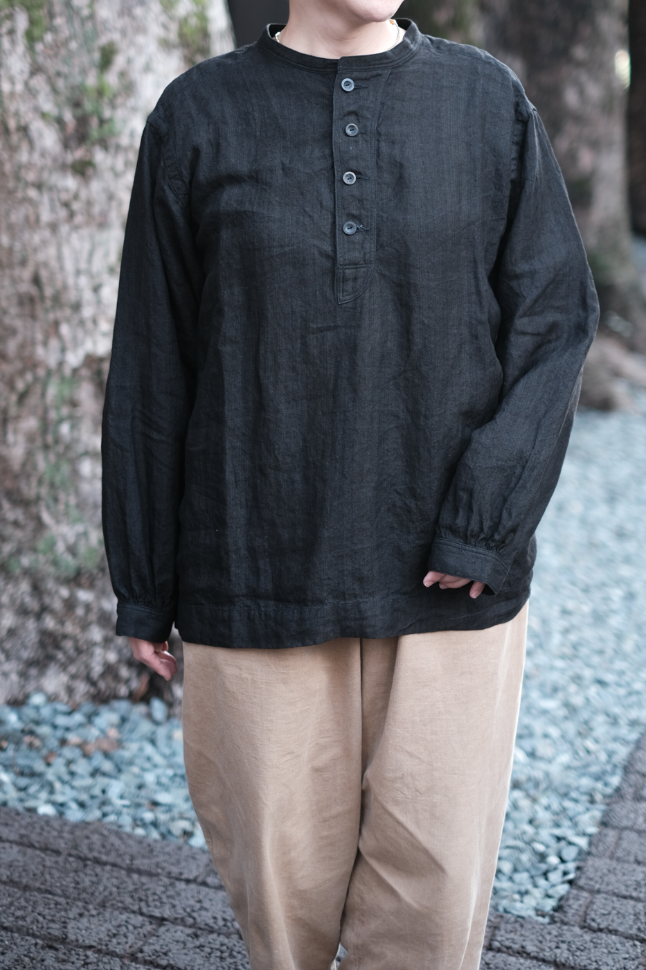 Re;li別注 Henry neck blouse (indigo linen) col.black