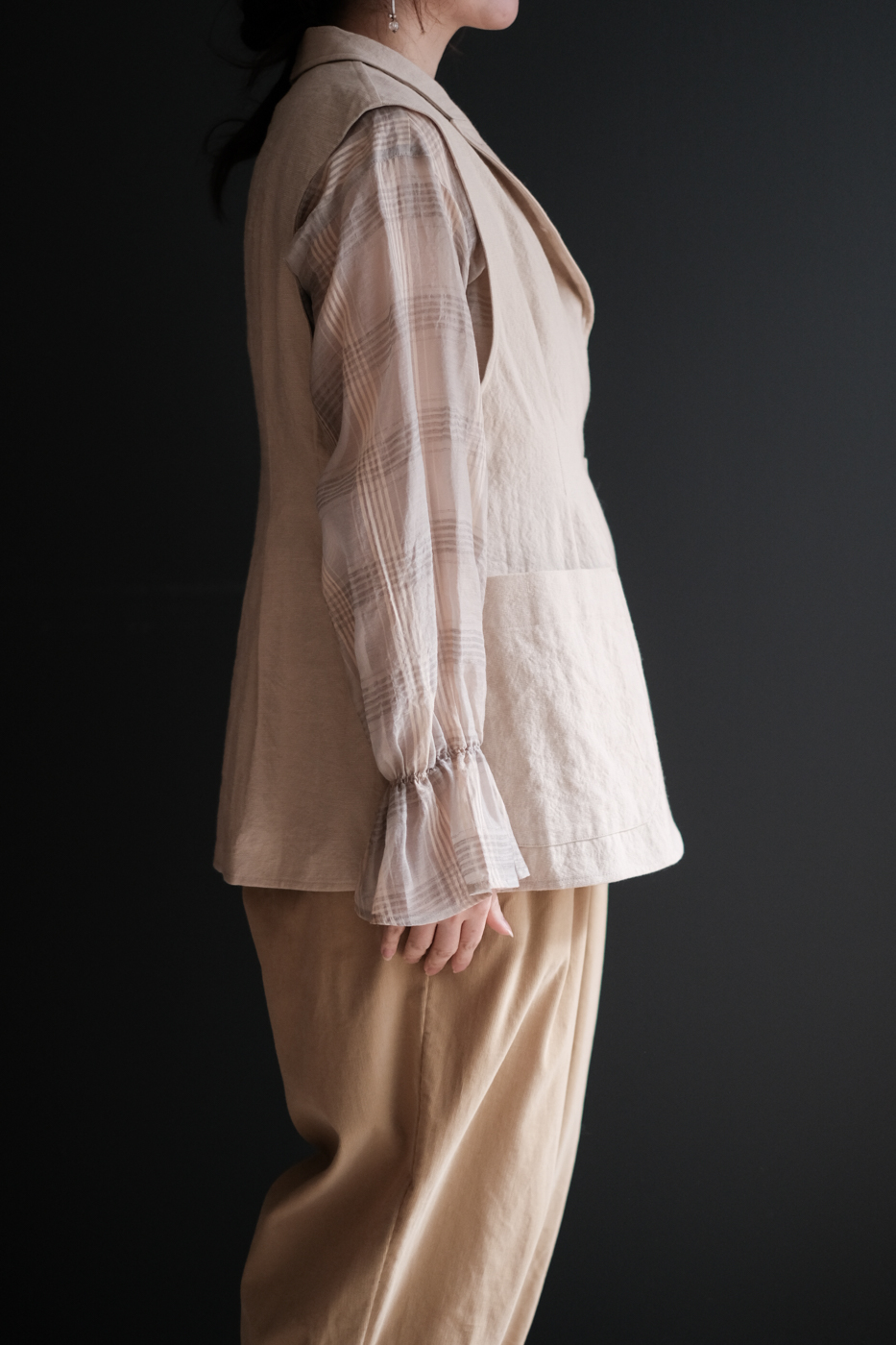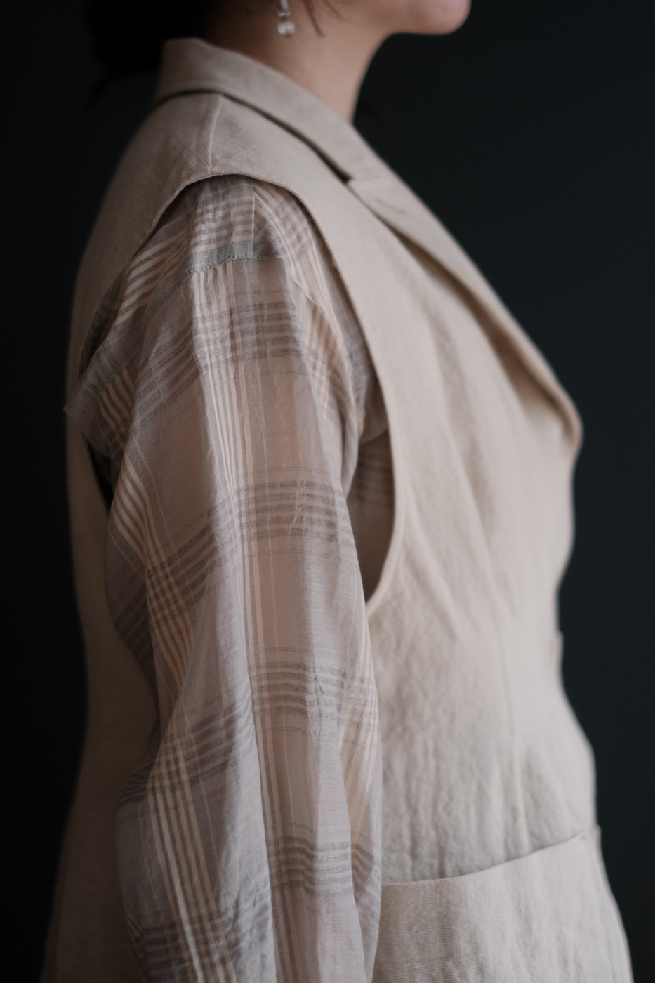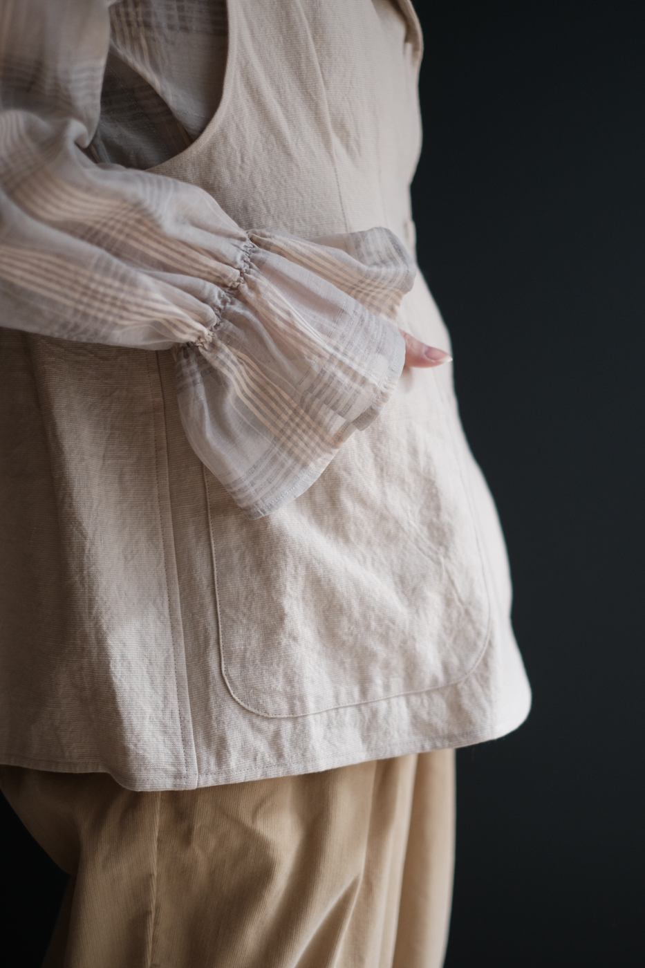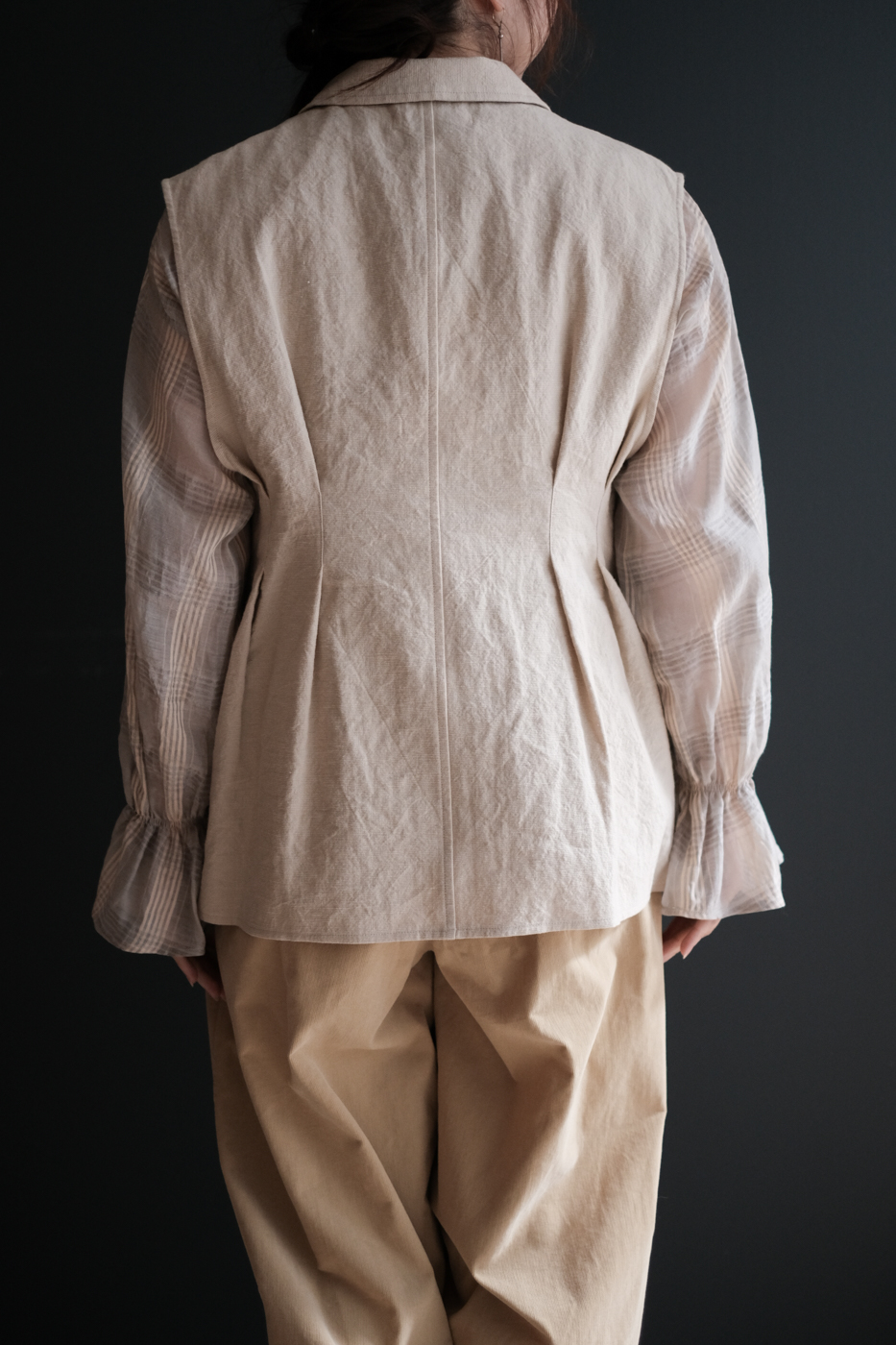 装いに深みを与えてくれるベストです。
