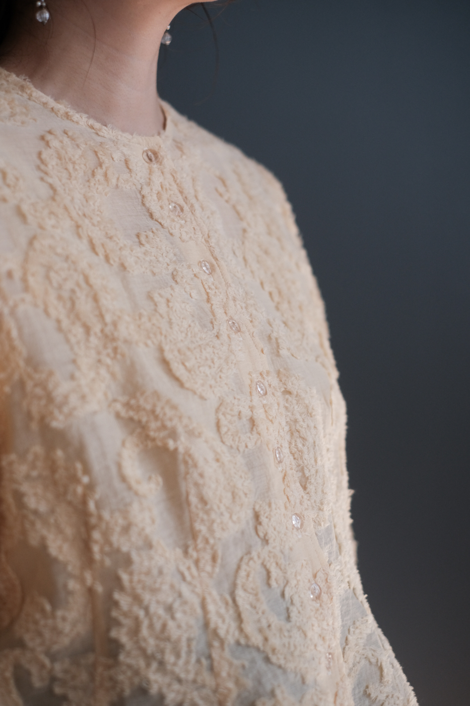 胸元辺りから裾付近にかけて8カ所にも及ぶダーツが
