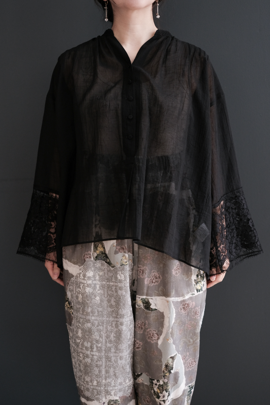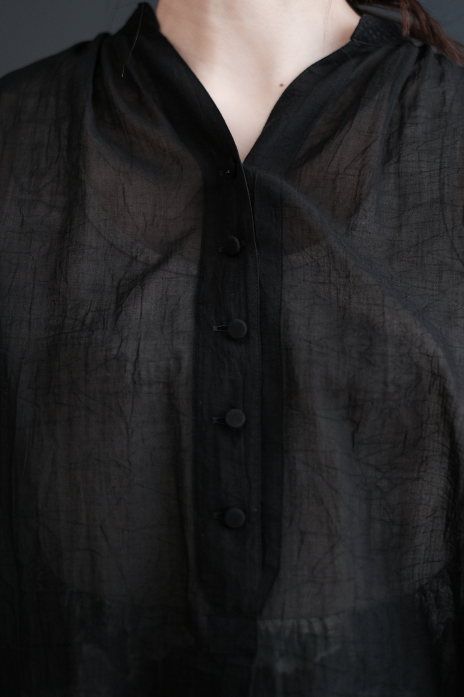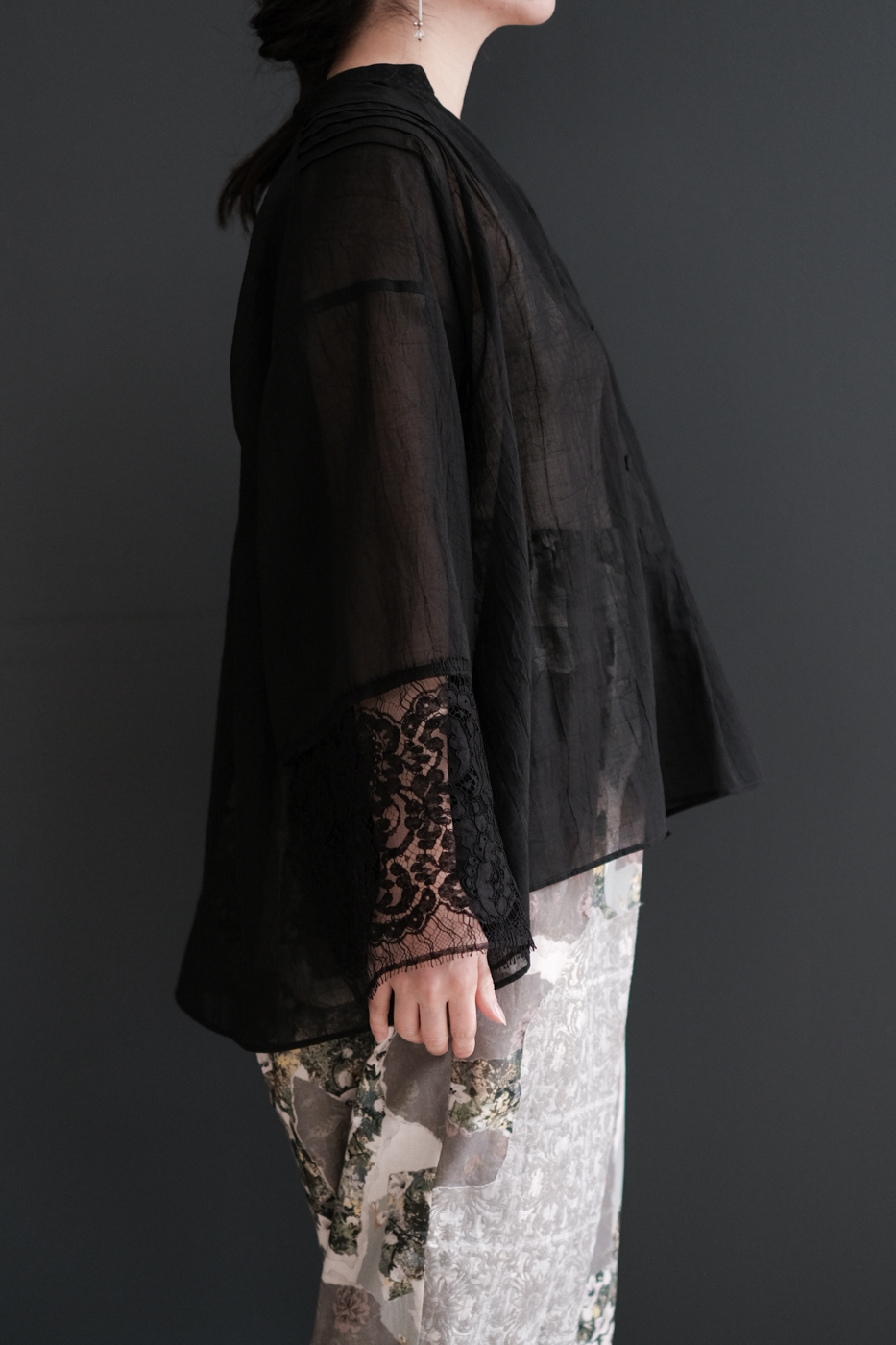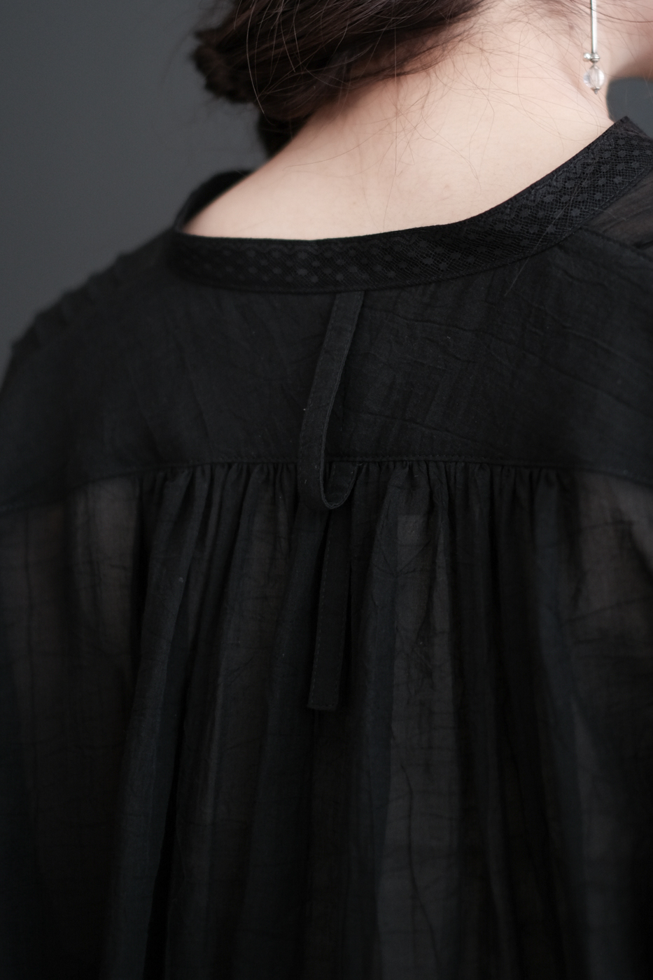 ヨーク部分のピンタックや後ろ身頃のギャザー、