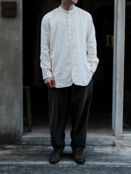Front button stole shirt (Soft cashmere wool etamine) col.ecru