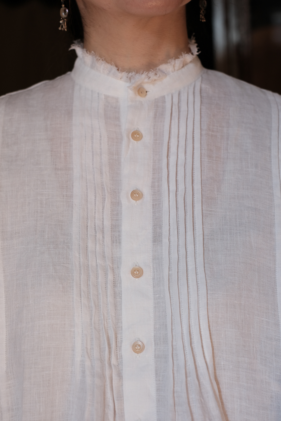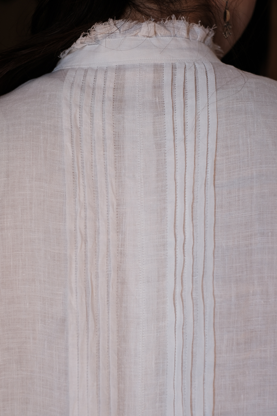 胸元に細かなピンタックが配された、
